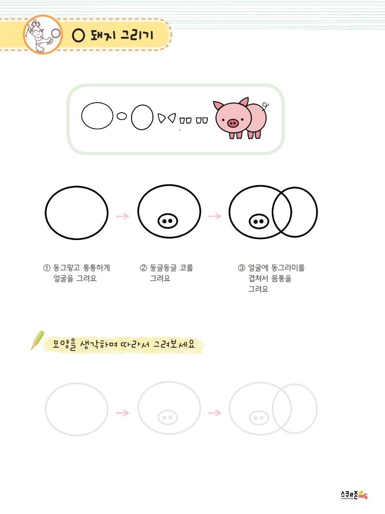 누구나 쉽게 따라할 수 있는 기초 도형 기반의 그림책입니다.
