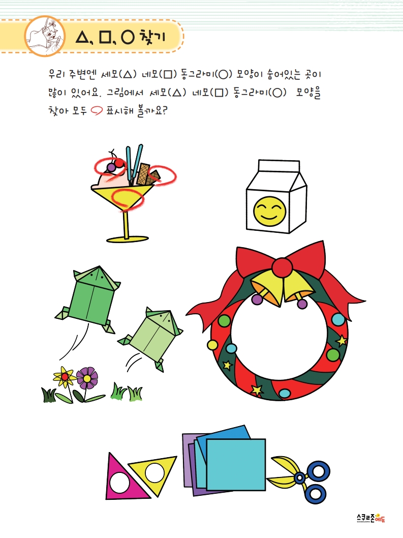 일상 속 도형을 찾아 그리며 놀이처럼 즐길 수 있습니다.