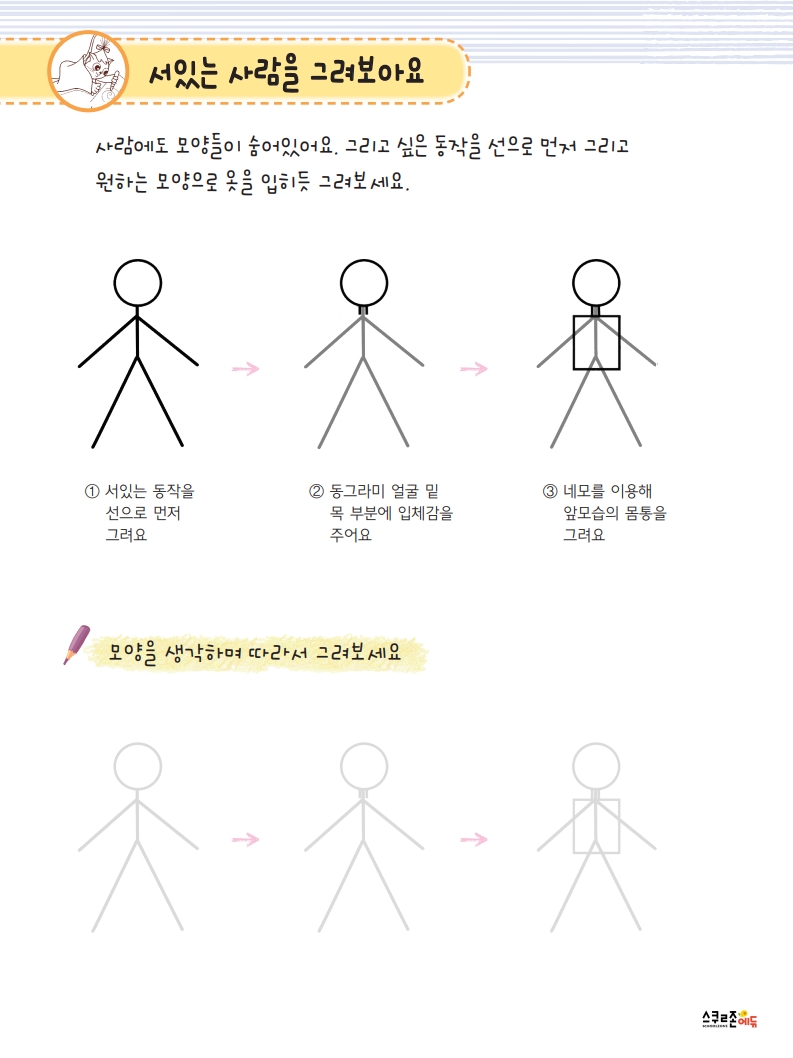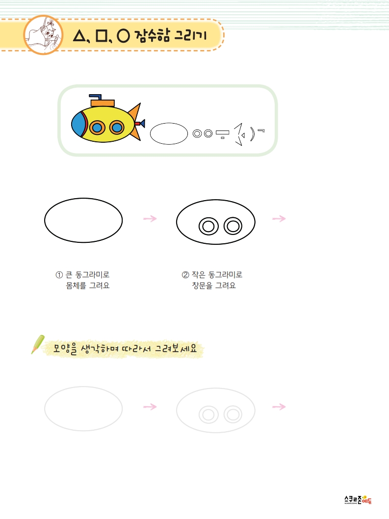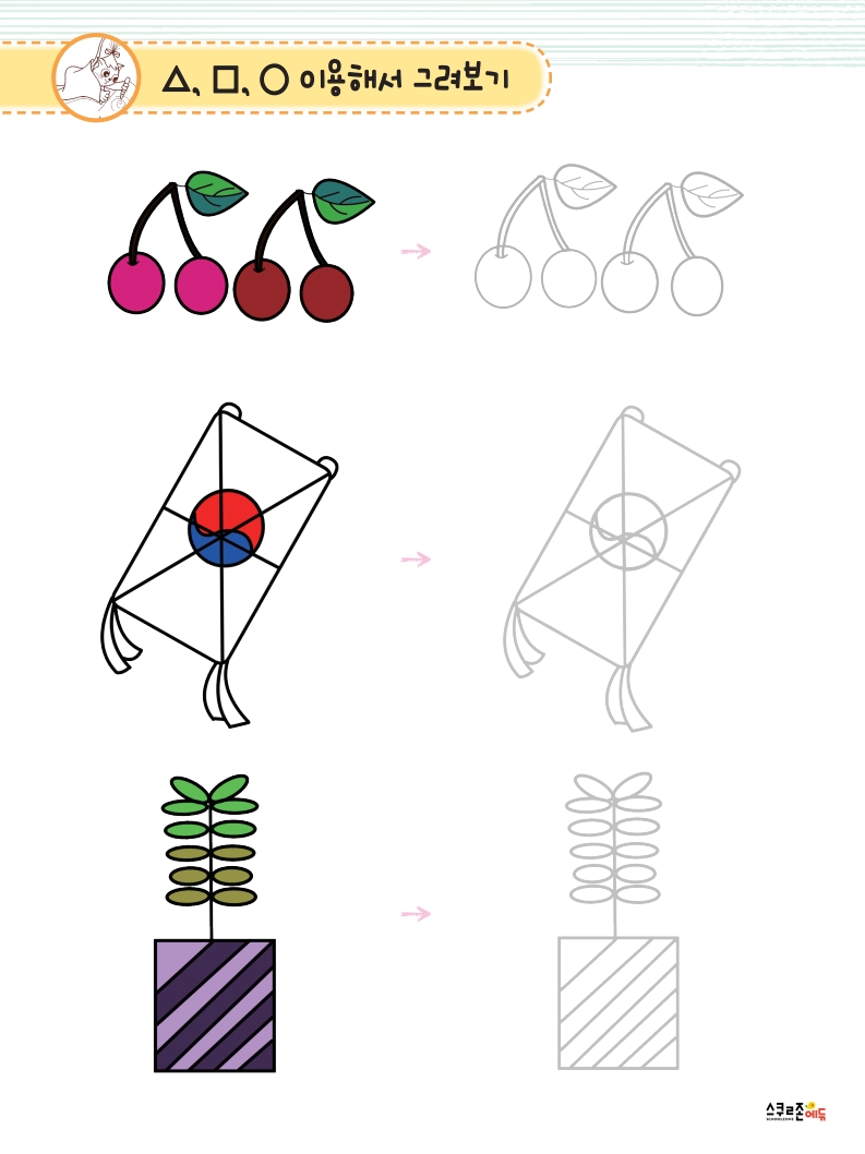 누구나 쉽게 따라할 수 있는 기초 도형 기반의 그림책입니다.