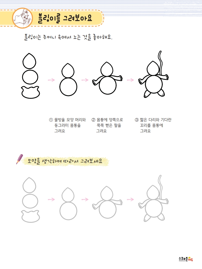 누구나 쉽게 따라할 수 있는 기초 도형 기반의 그림책입니다.