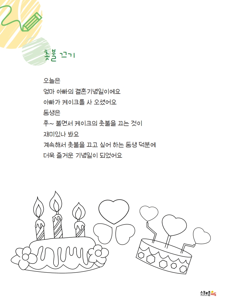 그림과 함께 동시를 읽으며 한글 실력도 함께 키울 수 있어요.