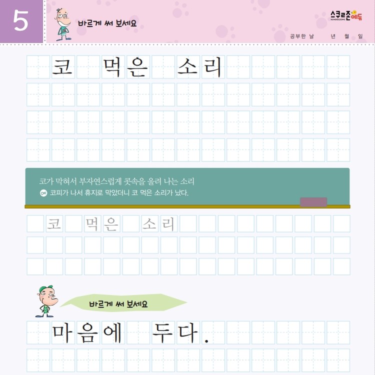 어릴 때부터 바른 글씨 습관을 들이는 것이 중요합니다.