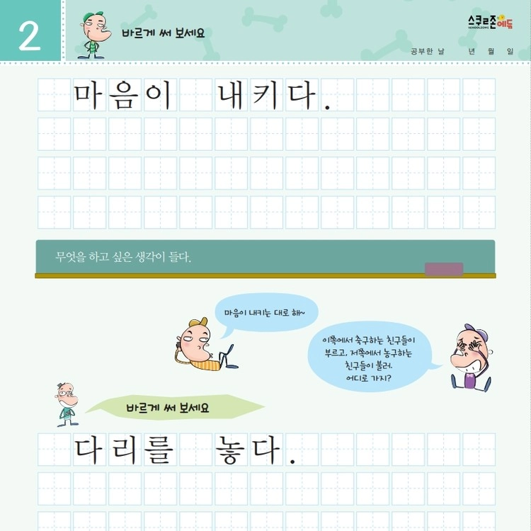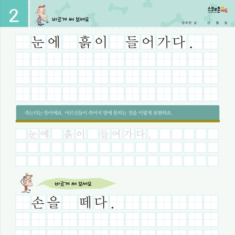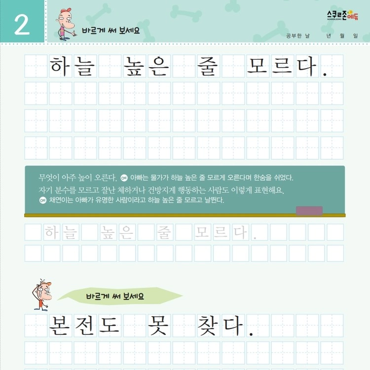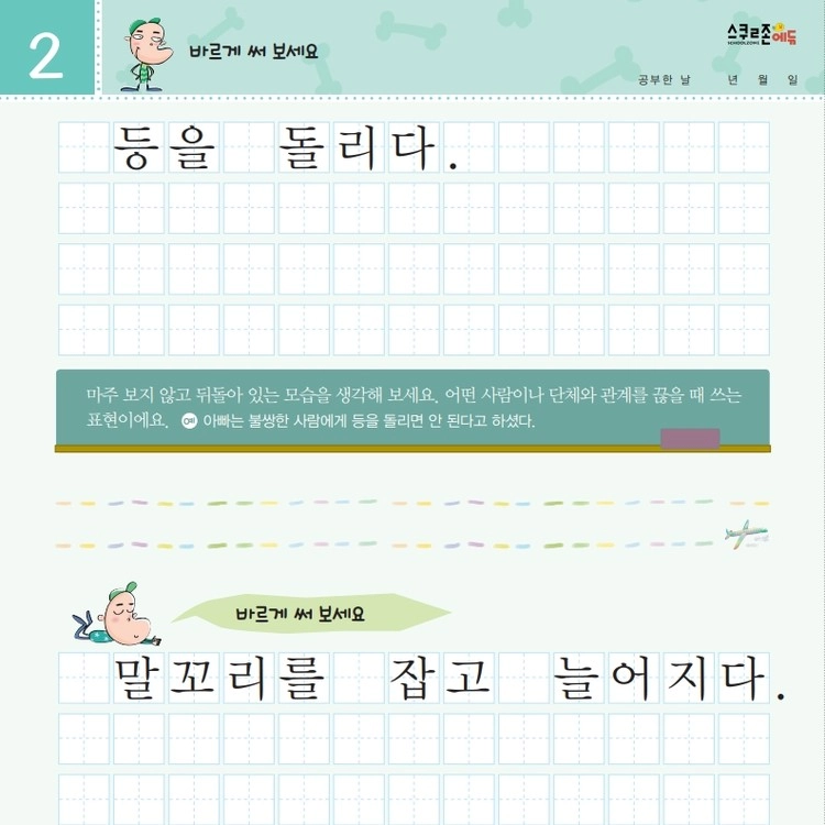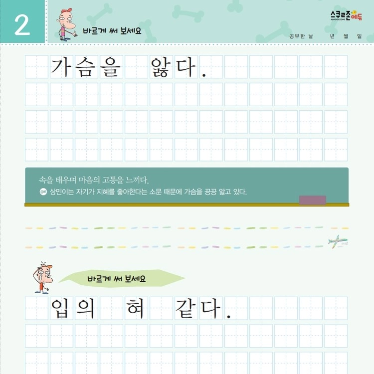 재미있는 관용어를 따라 쓰며 글씨체와 어휘력을 함께 기를 수 있습니다.