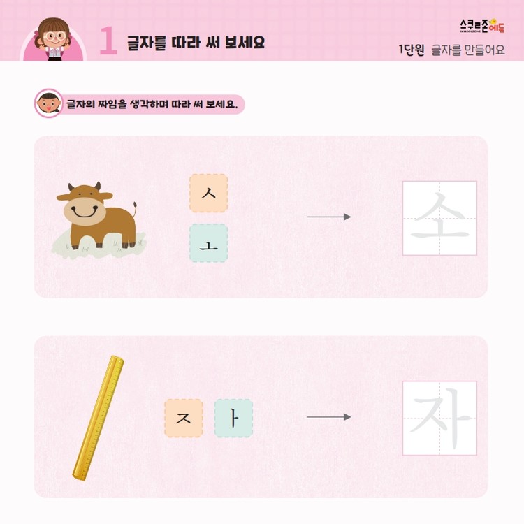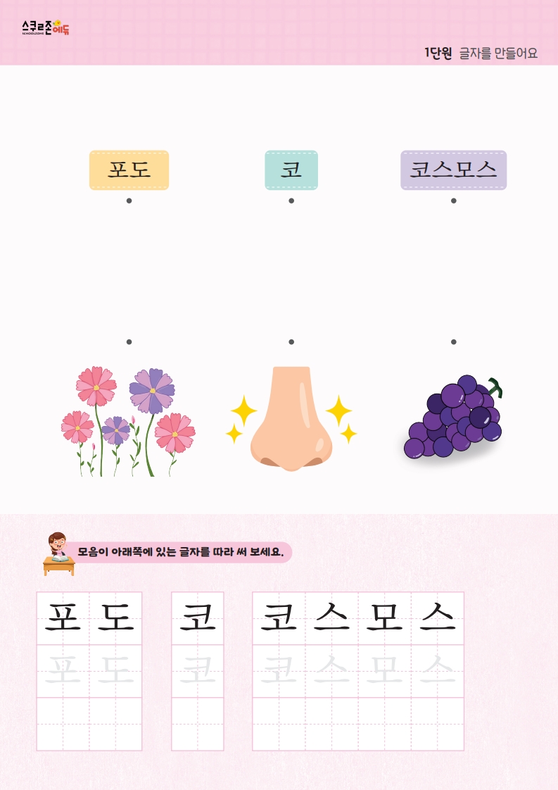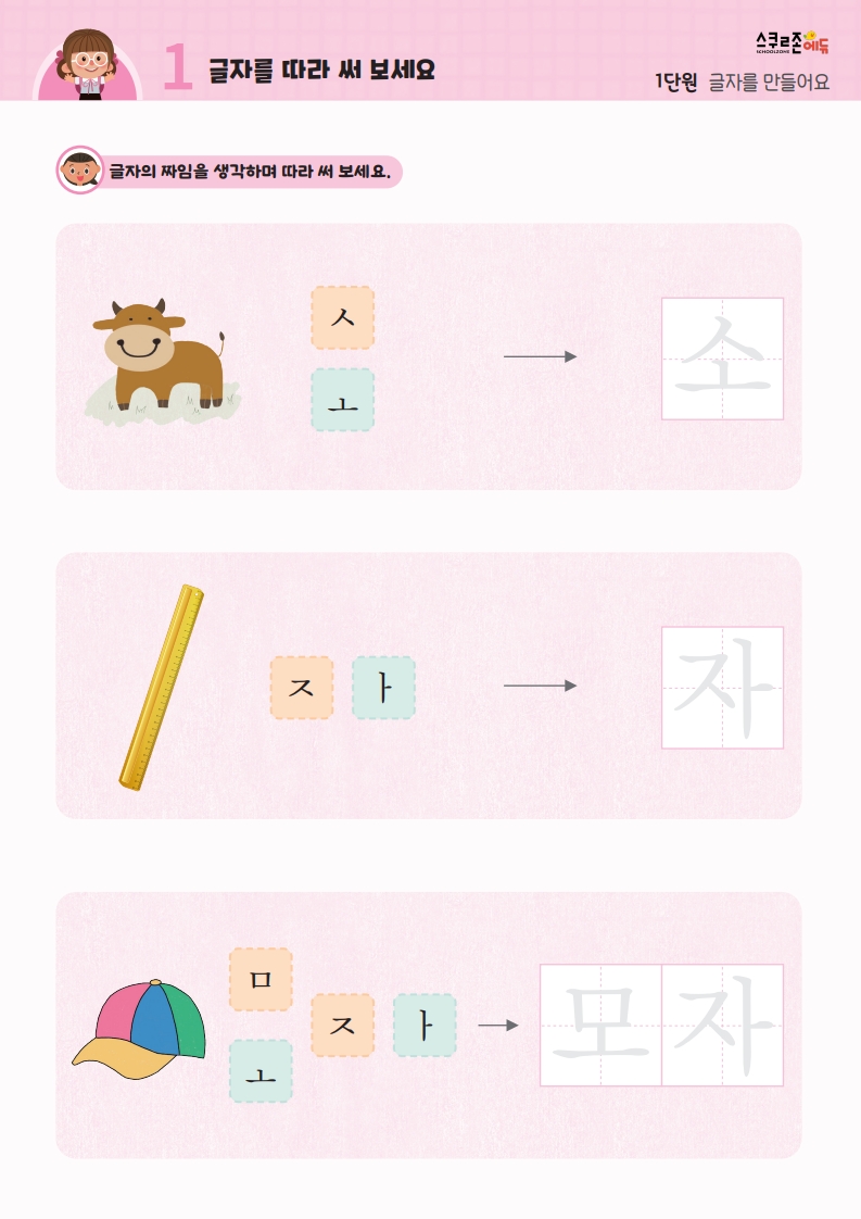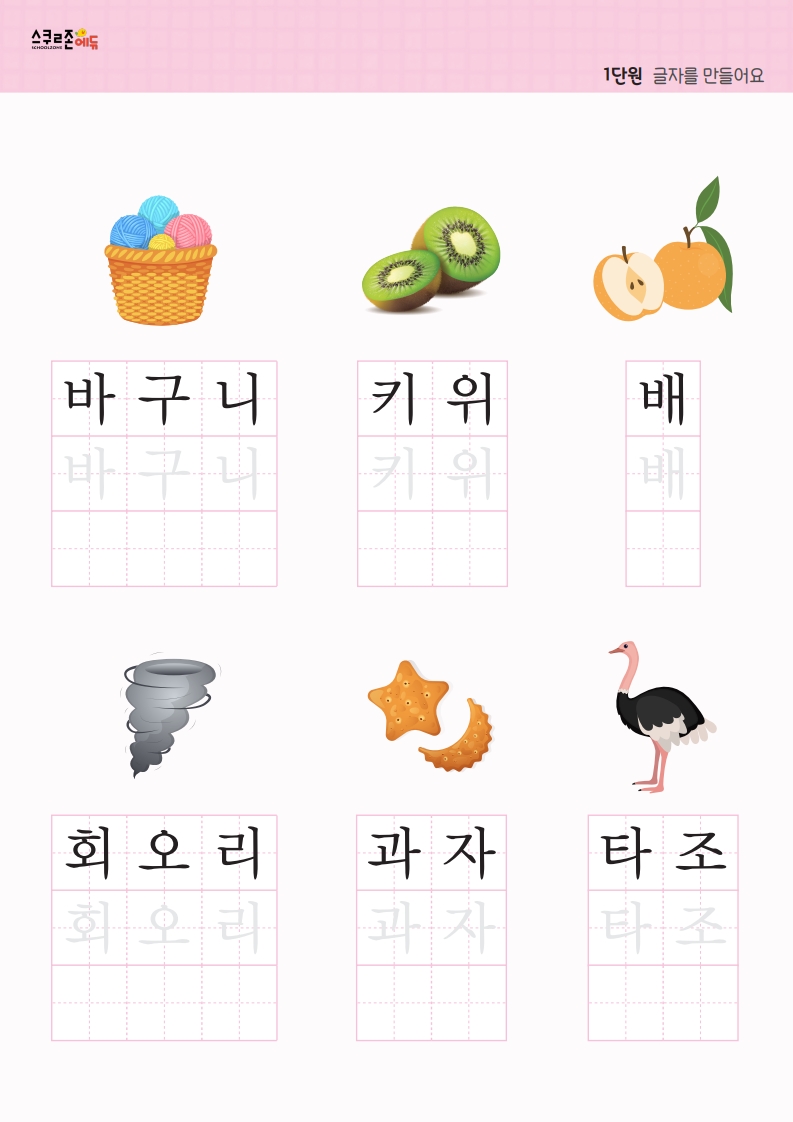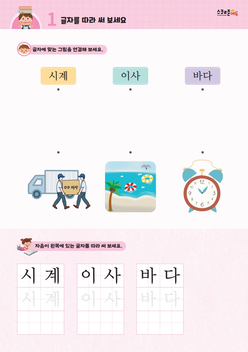 자음 · 모음부터 문장까지 체계적으로 쓰기를 연습할 수 있습니다.