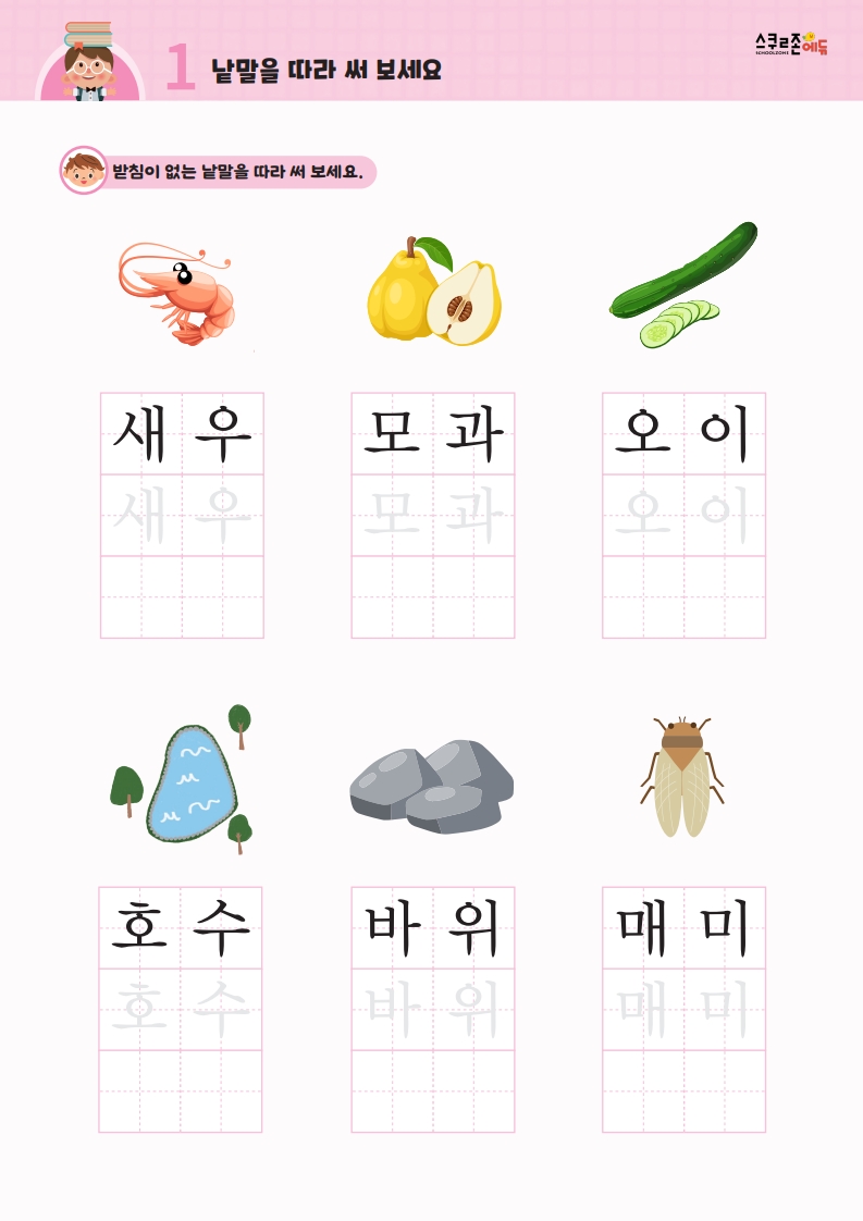꾸준한 따라쓰기를 통해 손힘, 집중력, 인내심이 자라고 글씨체도 예뻐집니다.