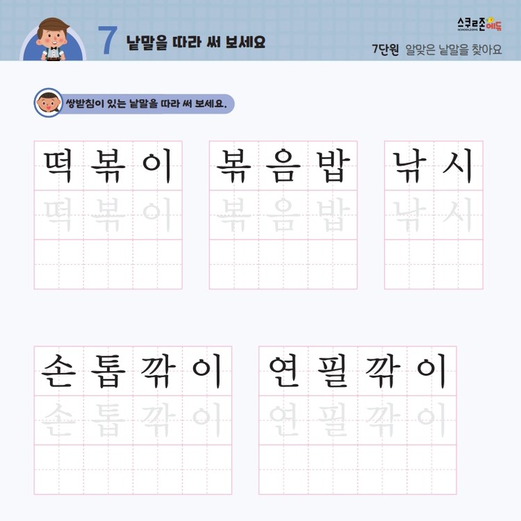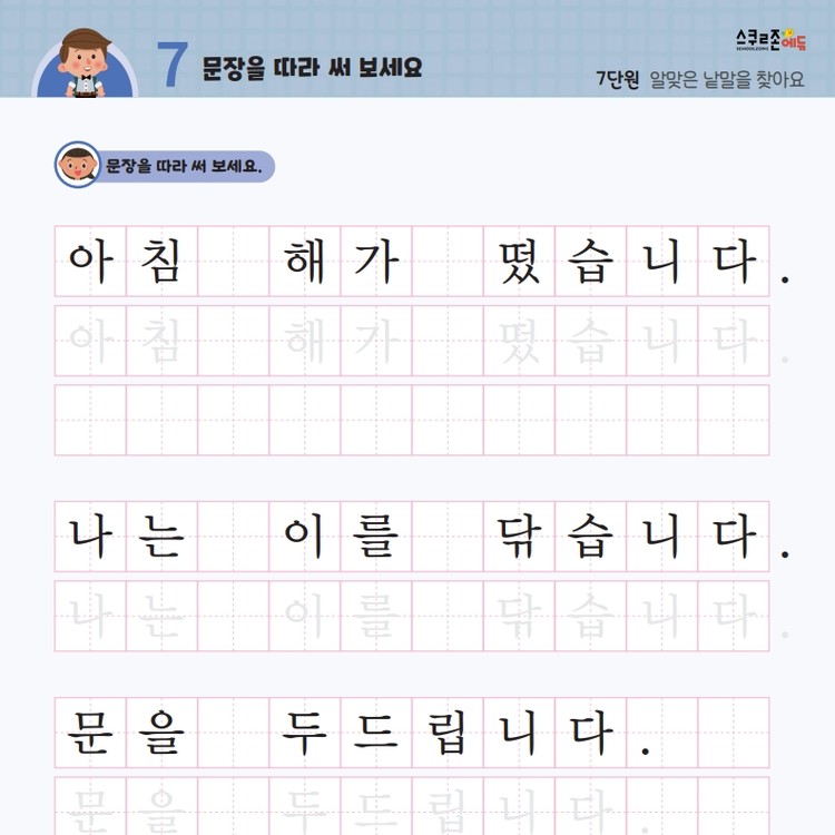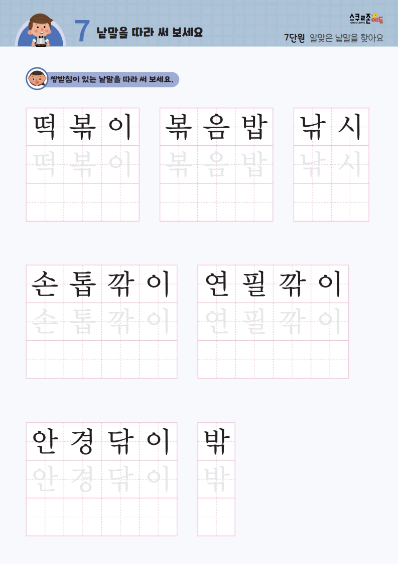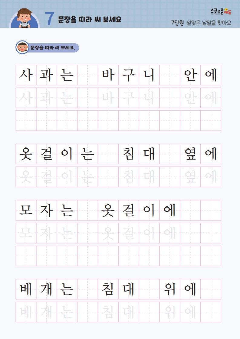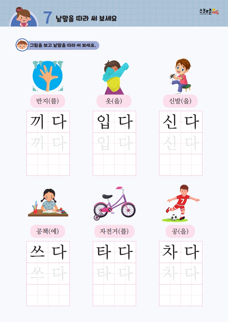 자음 · 모음부터 문장까지 체계적으로 쓰기를 연습할 수 있습니다.