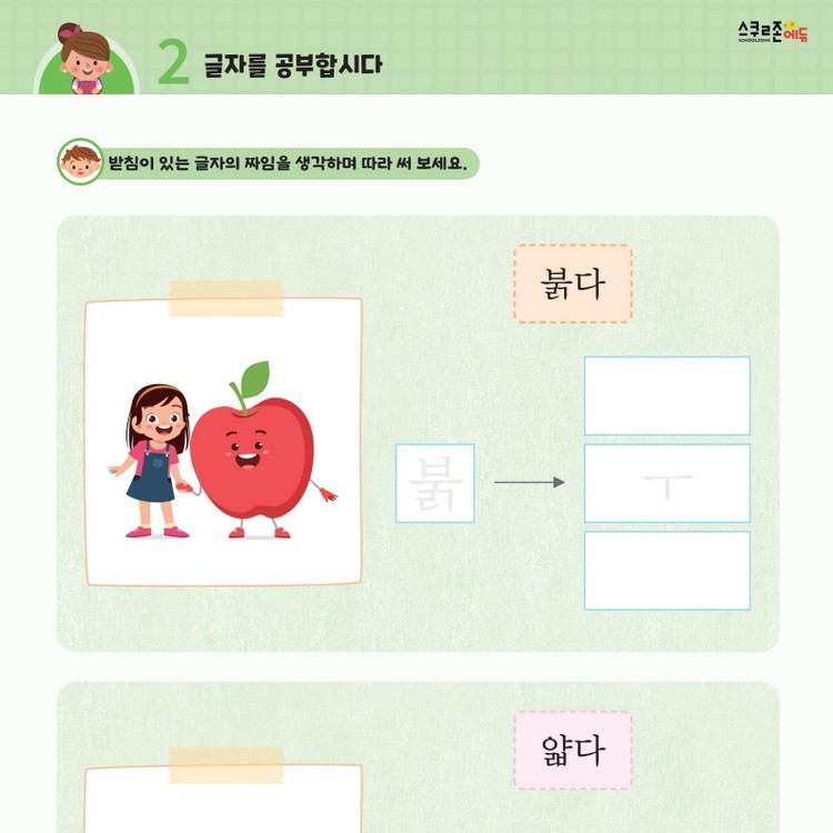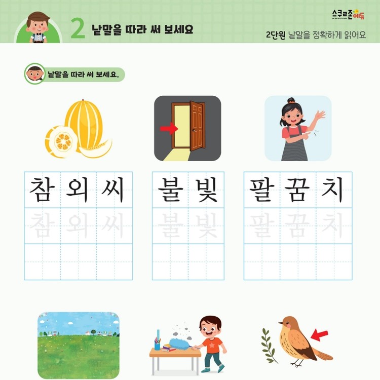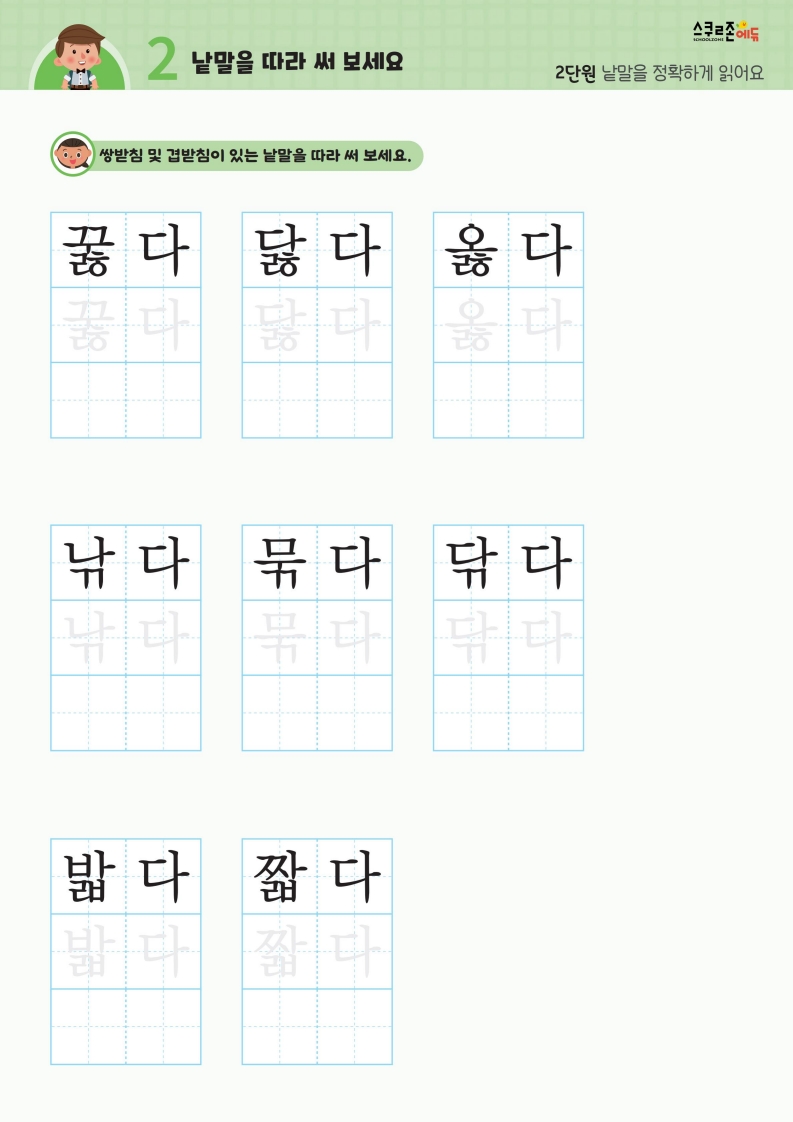 자음 · 모음부터 문장까지 체계적으로 쓰기를 연습할 수 있습니다.