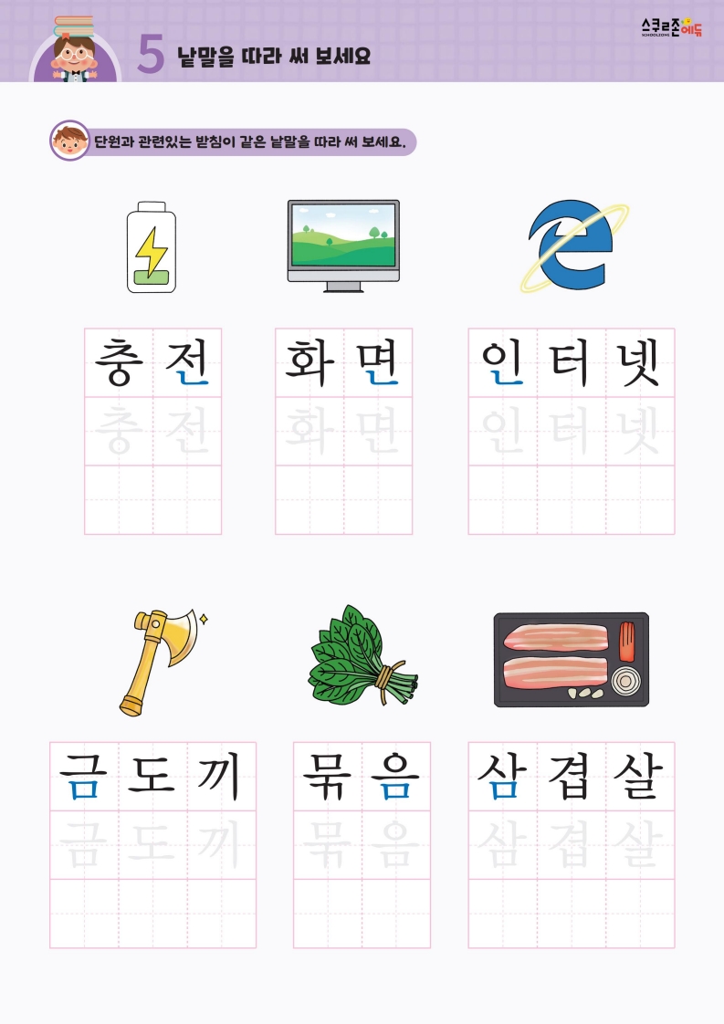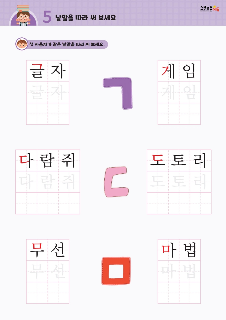 자음 · 모음부터 문장까지 체계적으로 쓰기를 연습할 수 있습니다.