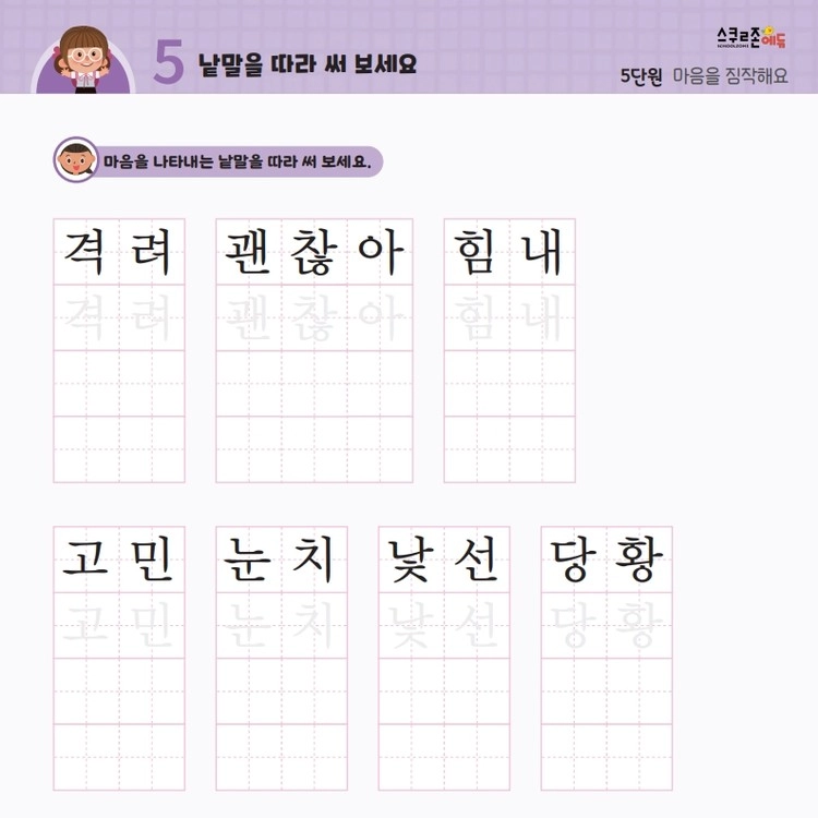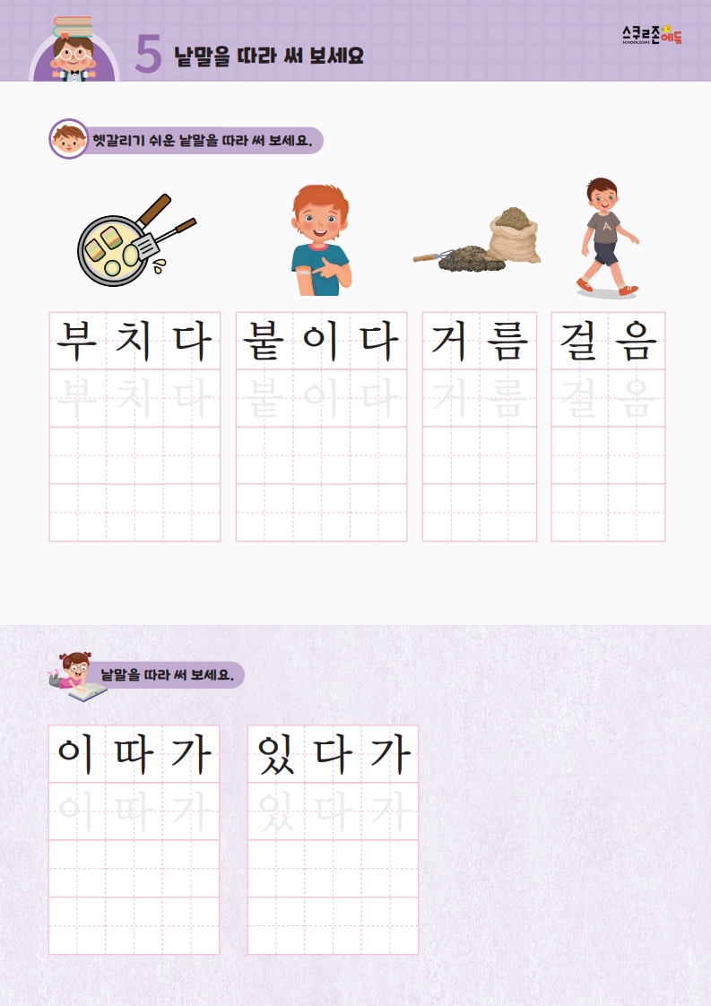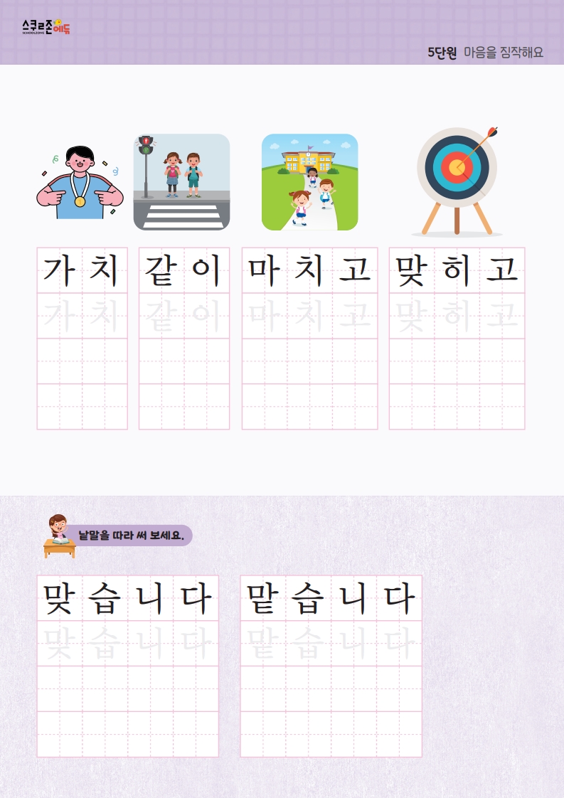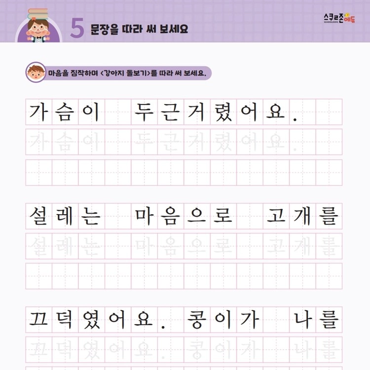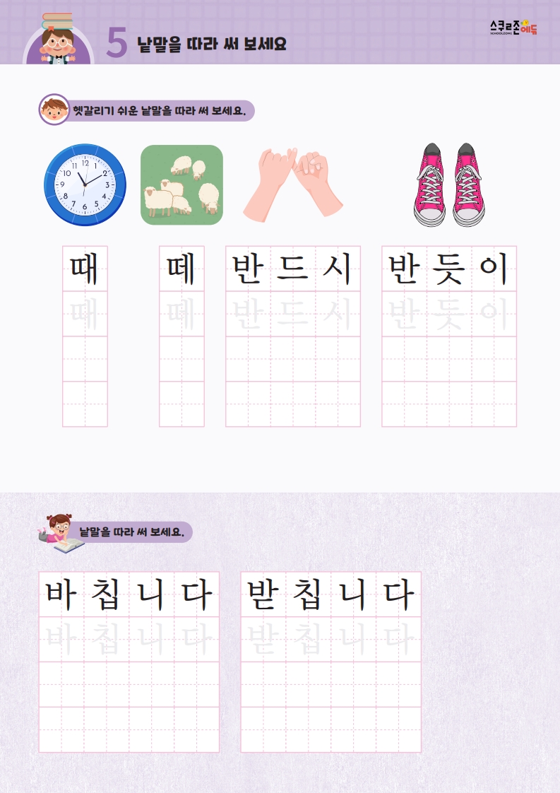 꾸준한 따라쓰기를 통해 손힘, 집중력, 인내심이 자라고 글씨체도 예뻐집니다.