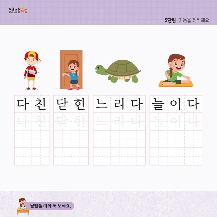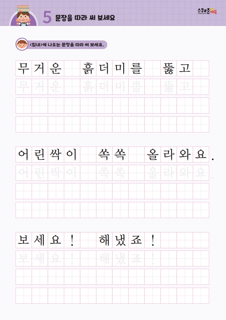자음 · 모음부터 문장까지 체계적으로 쓰기를 연습할 수 있습니다.
