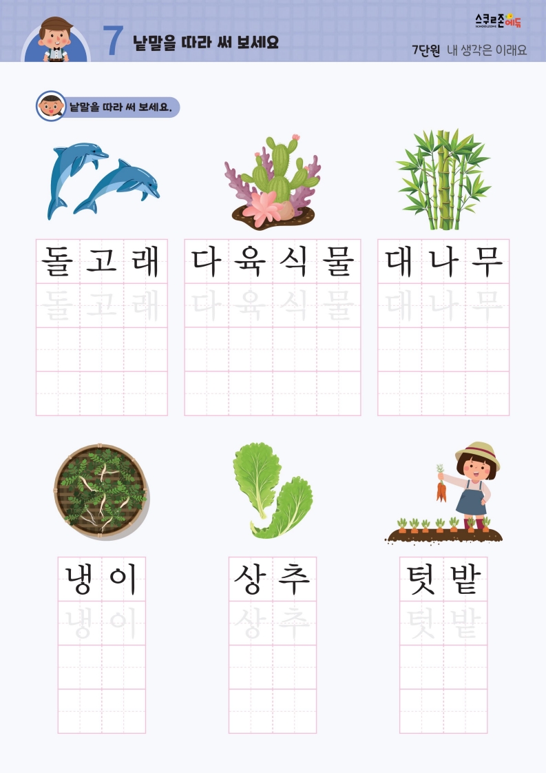자음 · 모음부터 문장까지 체계적으로 쓰기를 연습할 수 있습니다.