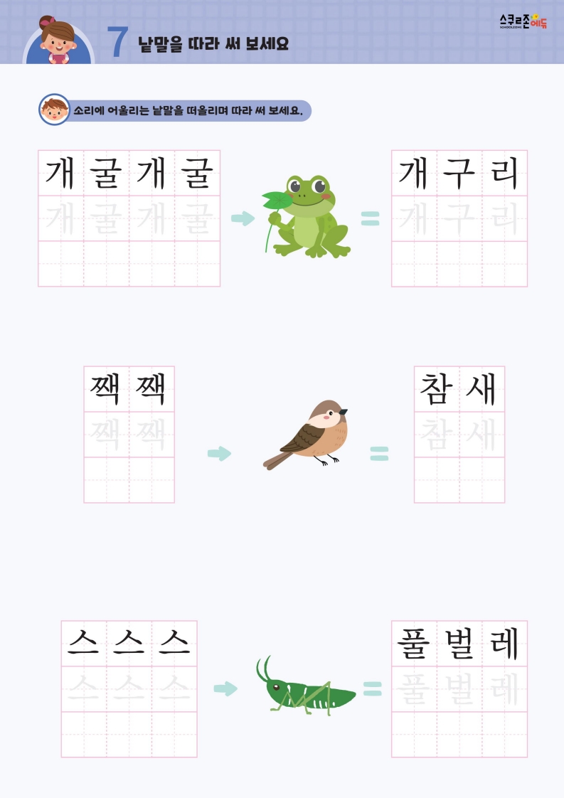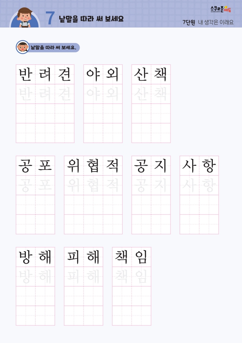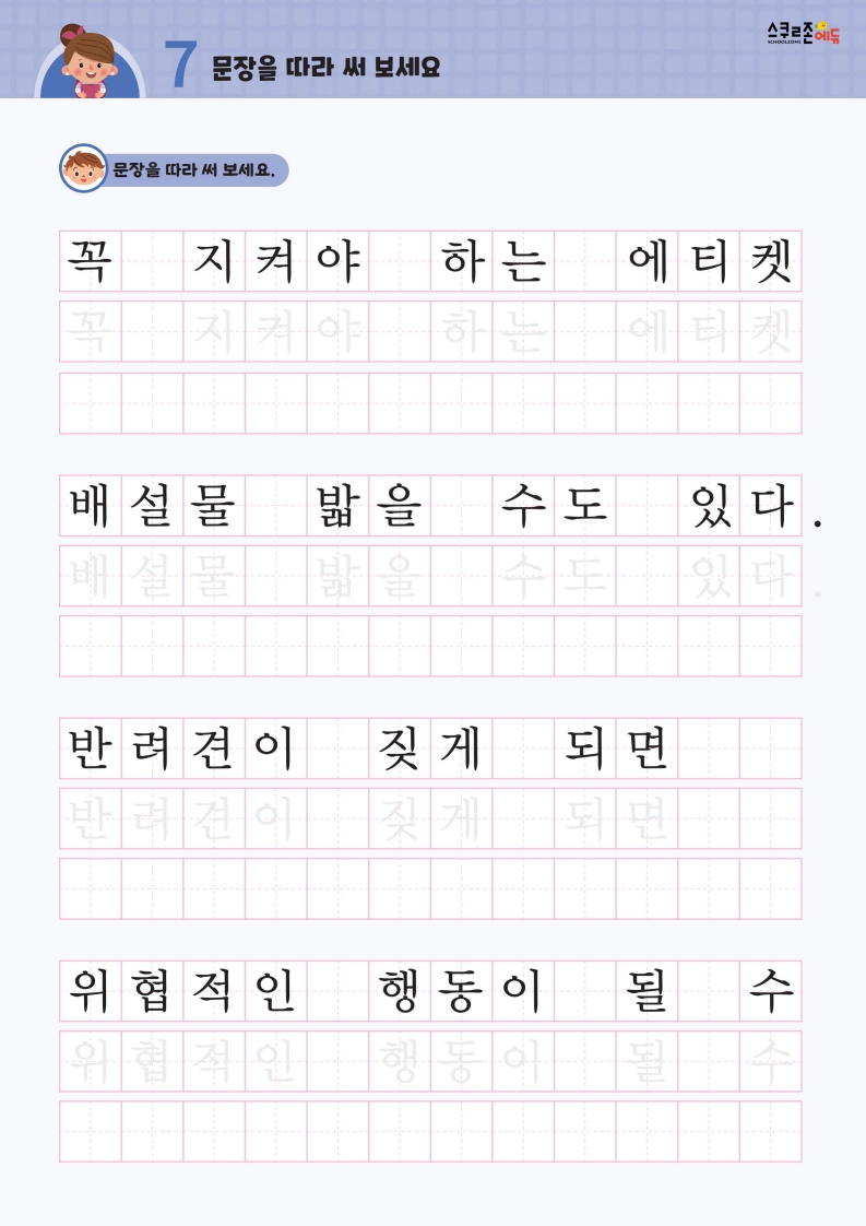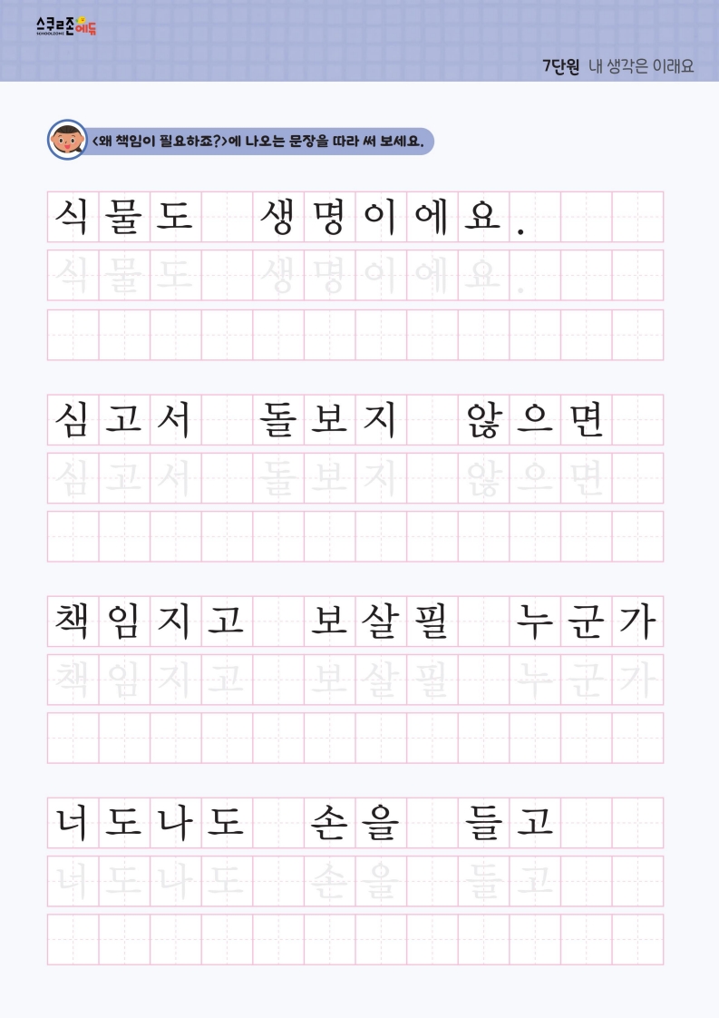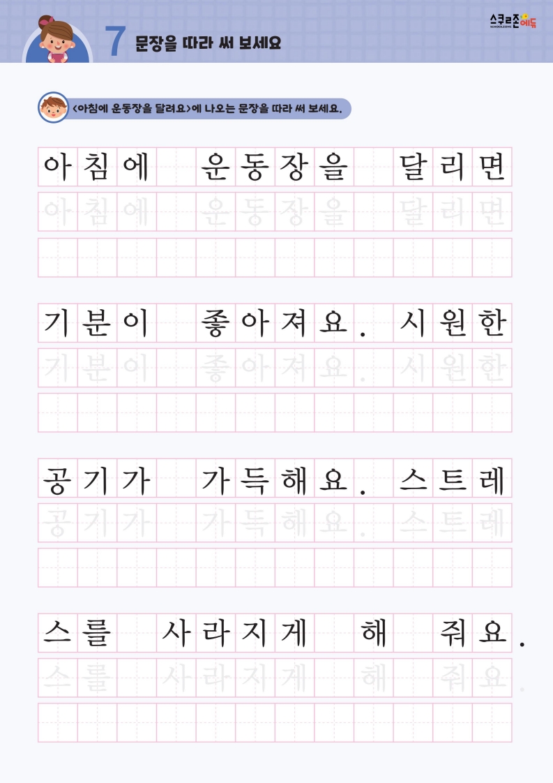 꾸준한 따라쓰기를 통해 손힘, 집중력, 인내심이 자라고 글씨체도 예뻐집니다.