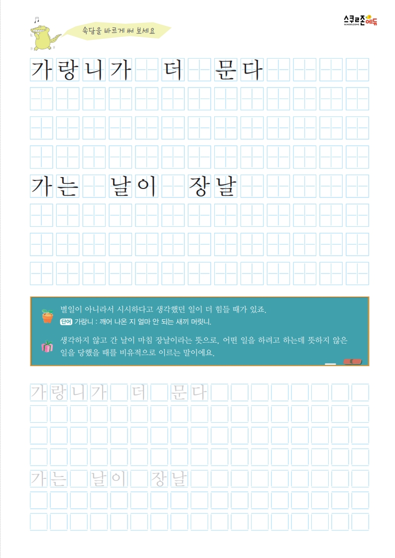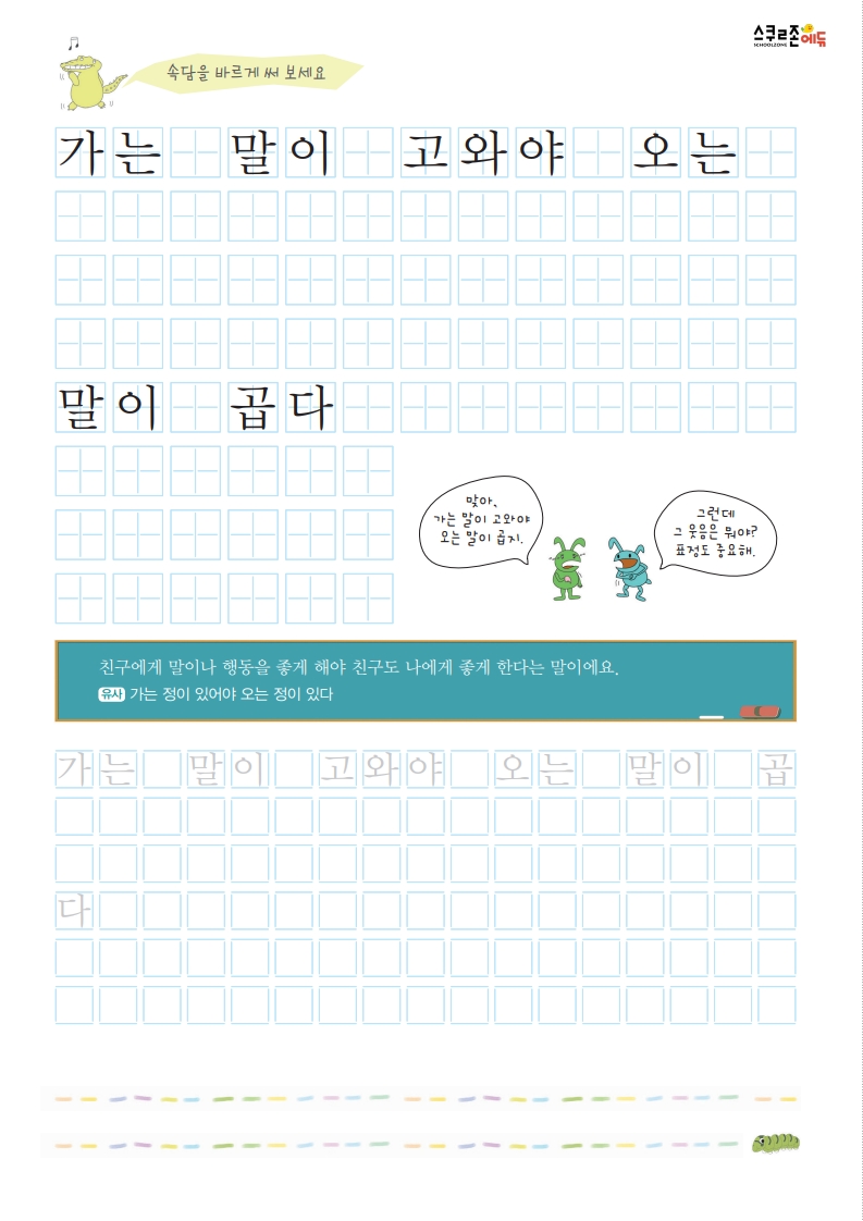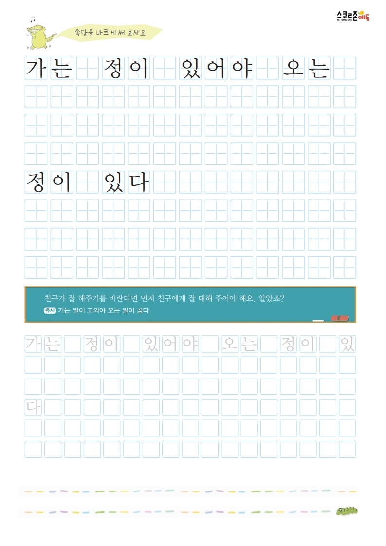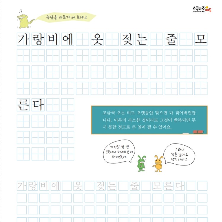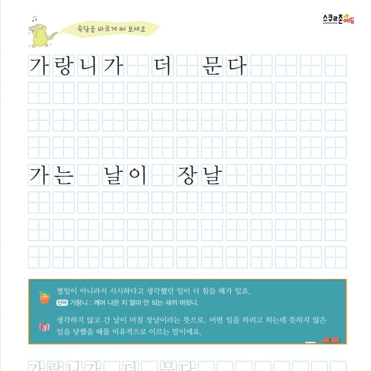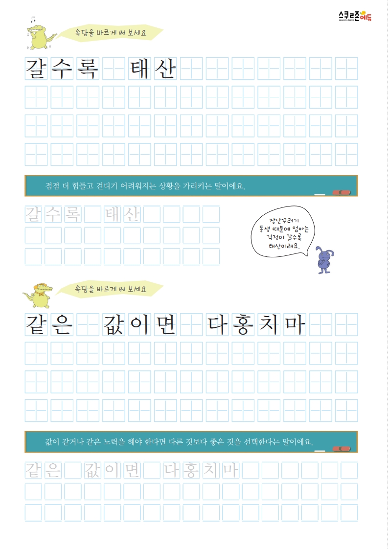 속담을 쓰며 글씨연습과 어휘력 향상을 동시에!