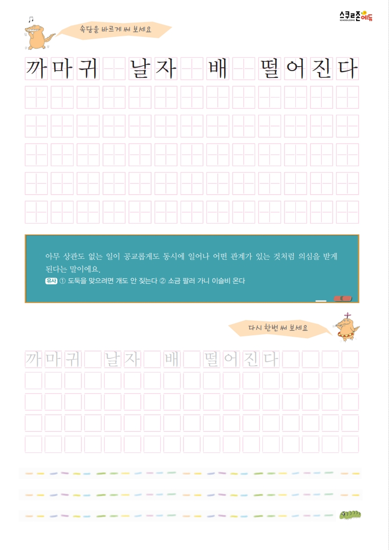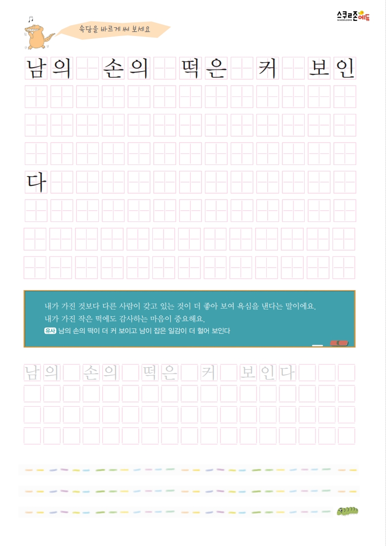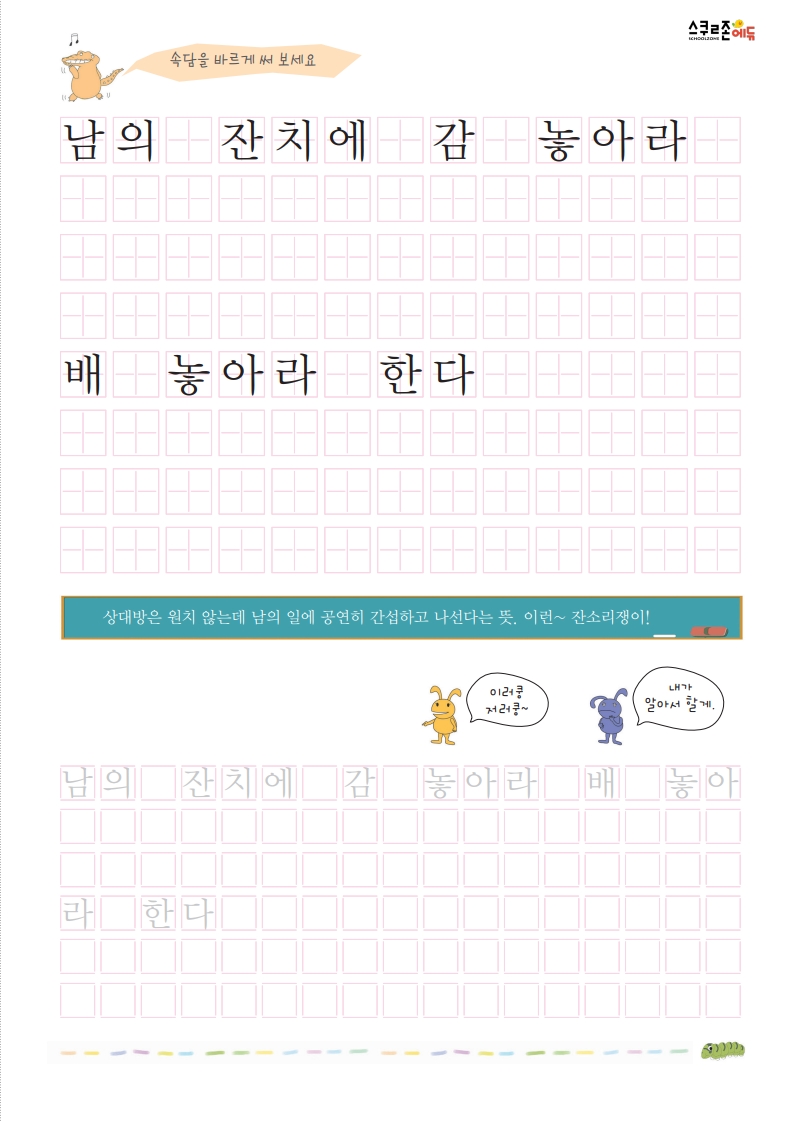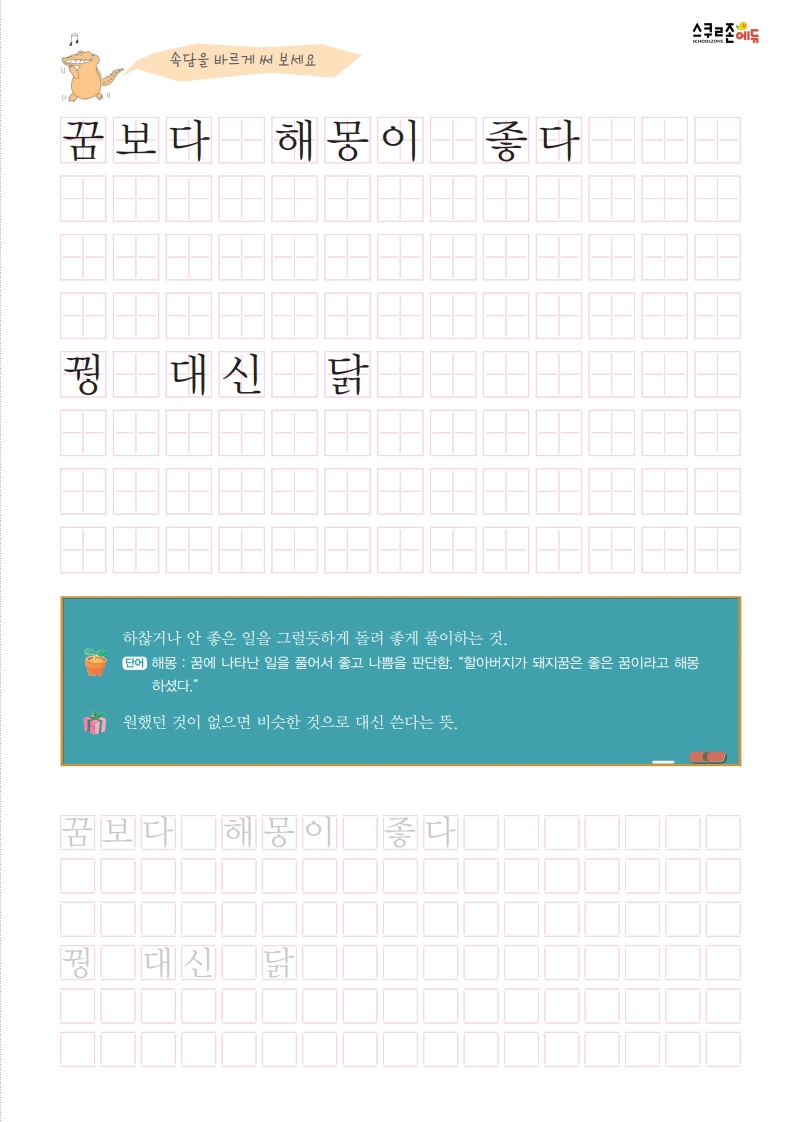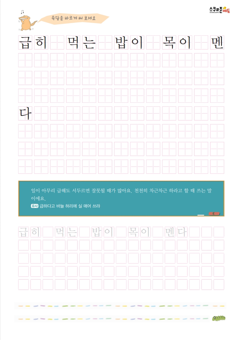 속담을 쓰며 글씨연습과 어휘력 향상을 동시에!
