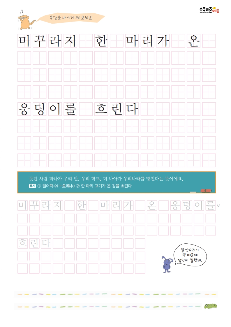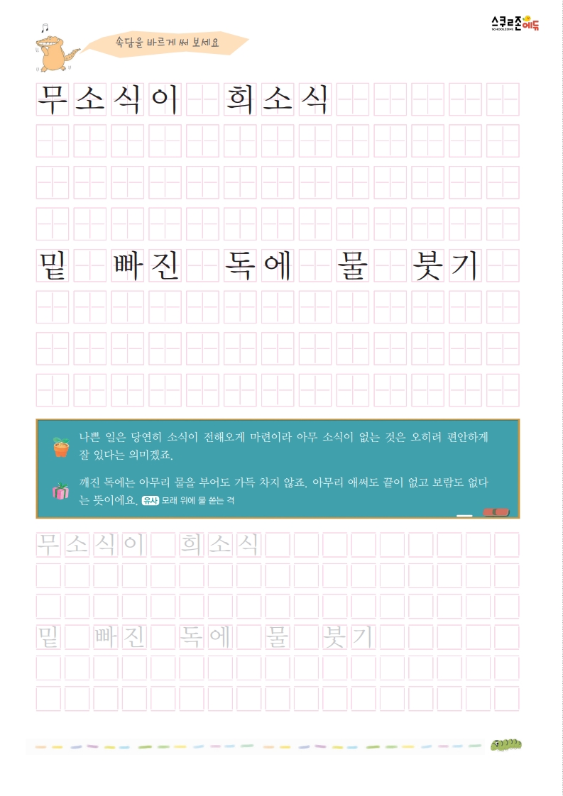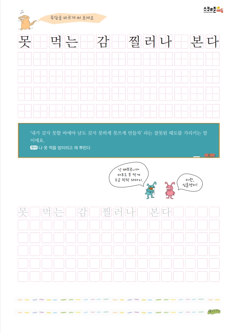 속담을 쓰며 글씨연습과 어휘력 향상을 동시에!
