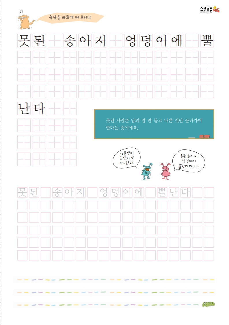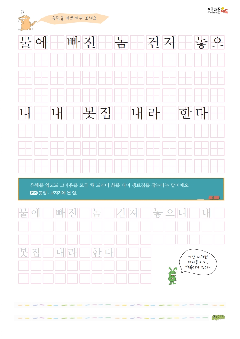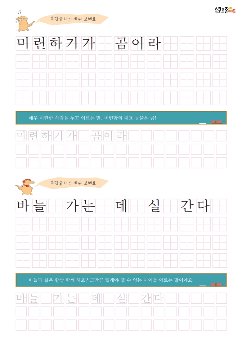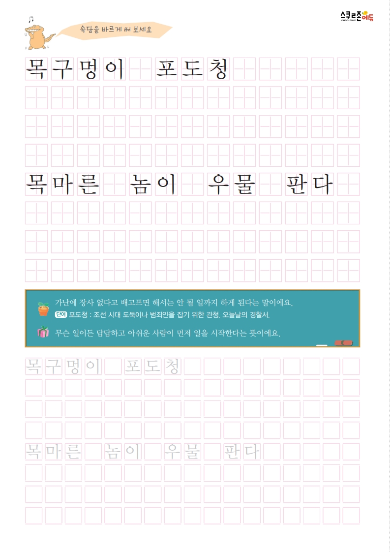 속담을 쓰며 글씨연습과 어휘력 향상을 동시에!