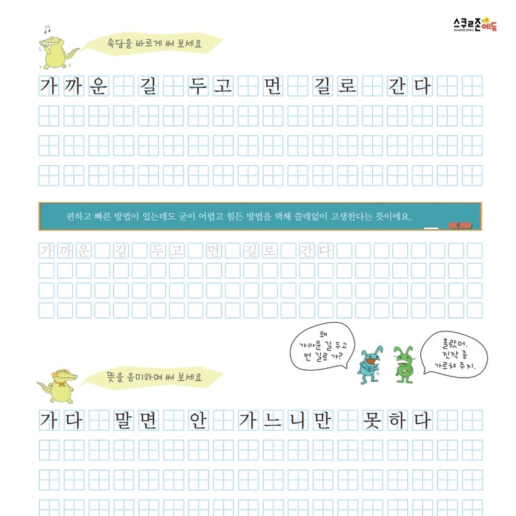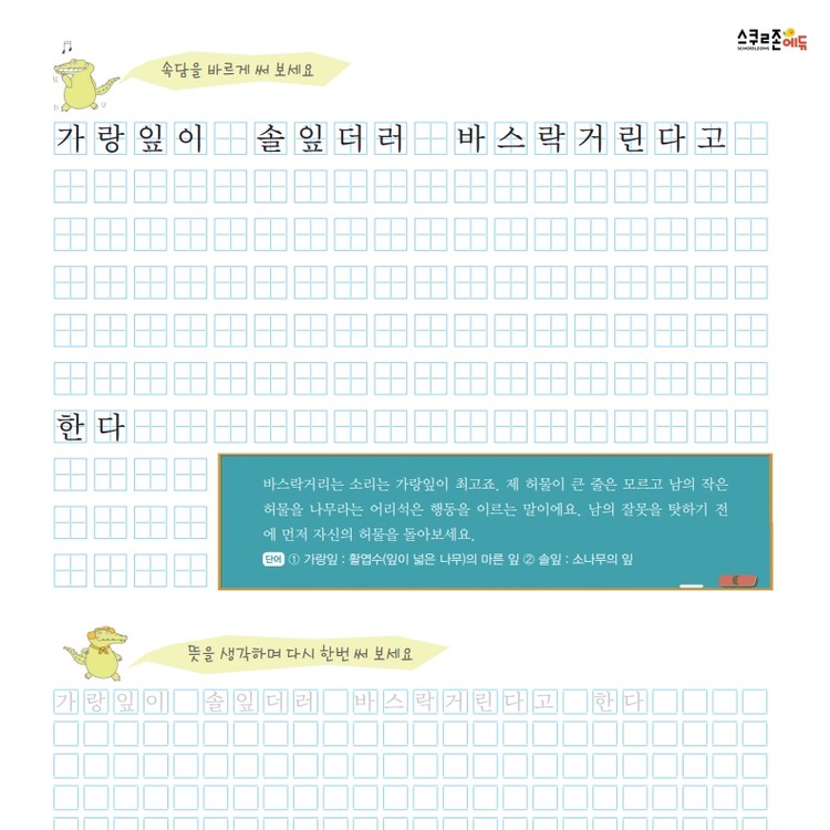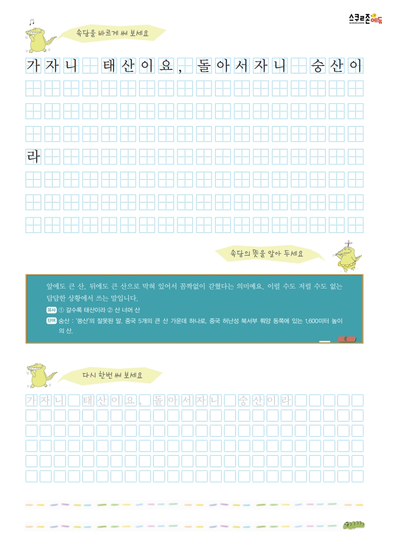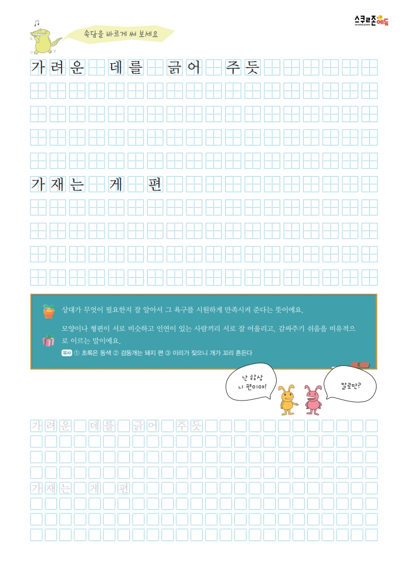 속담을 쓰며 글씨연습과 어휘력 향상을 동시에!