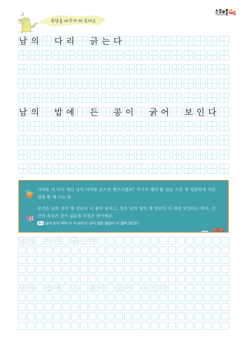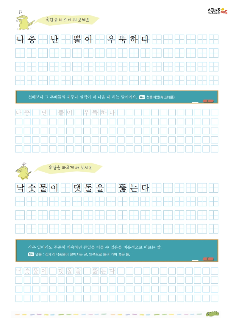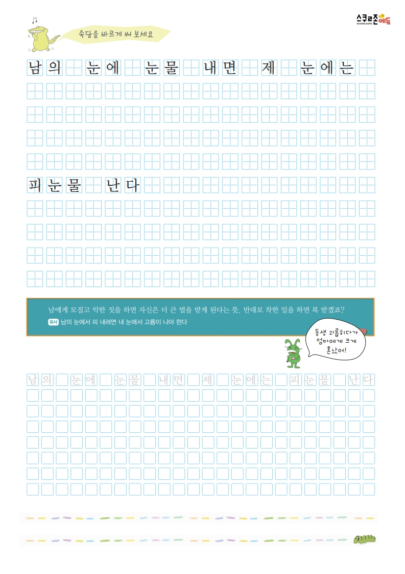 속담을 쓰며 글씨연습과 어휘력 향상을 동시에!