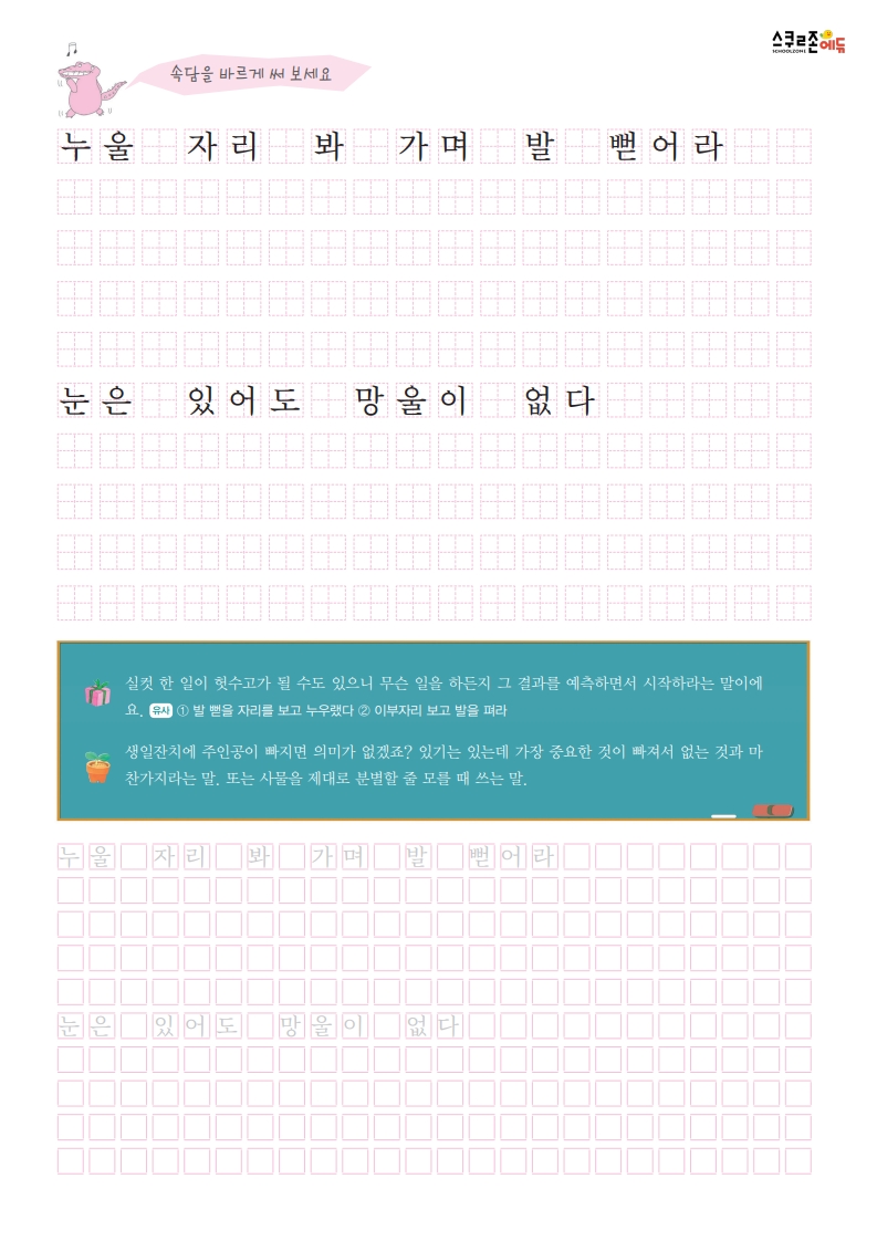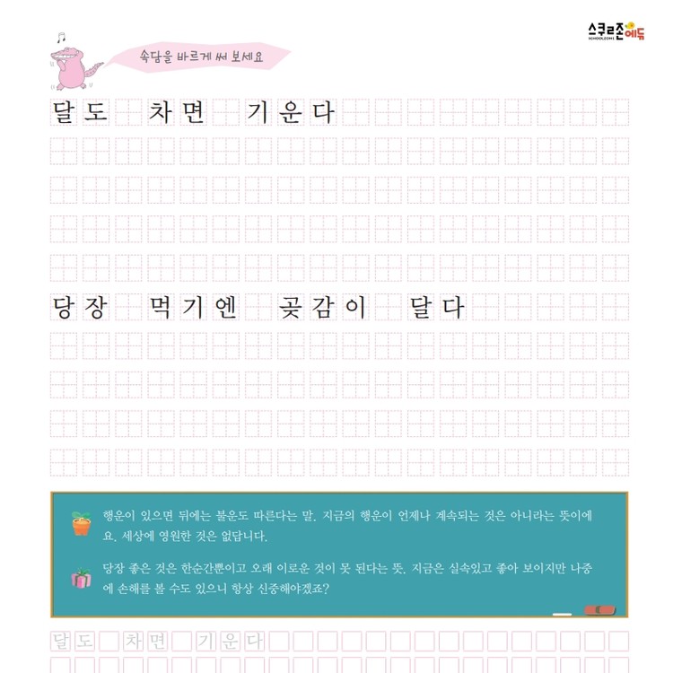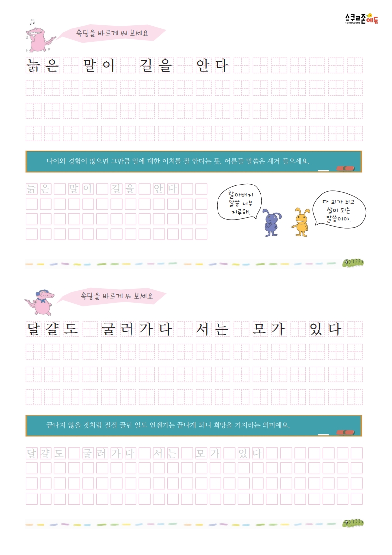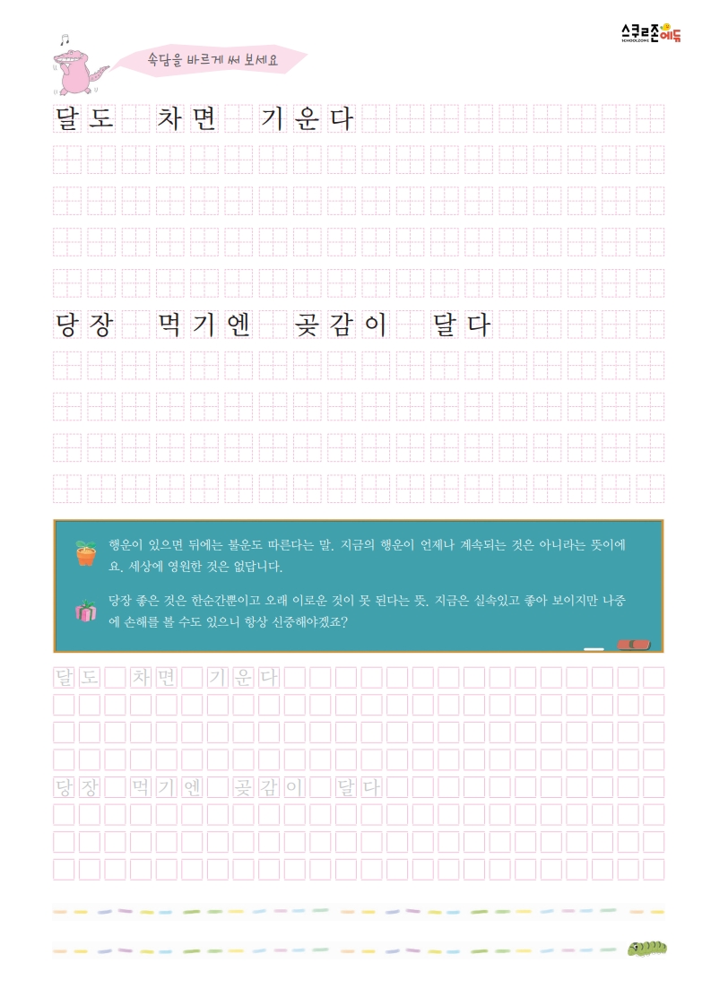 속담을 쓰며 글씨연습과 어휘력 향상을 동시에!