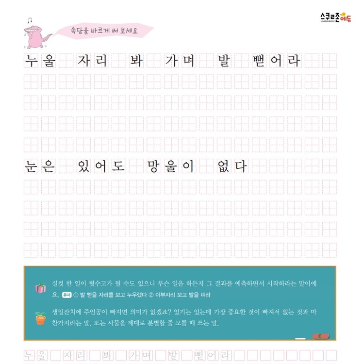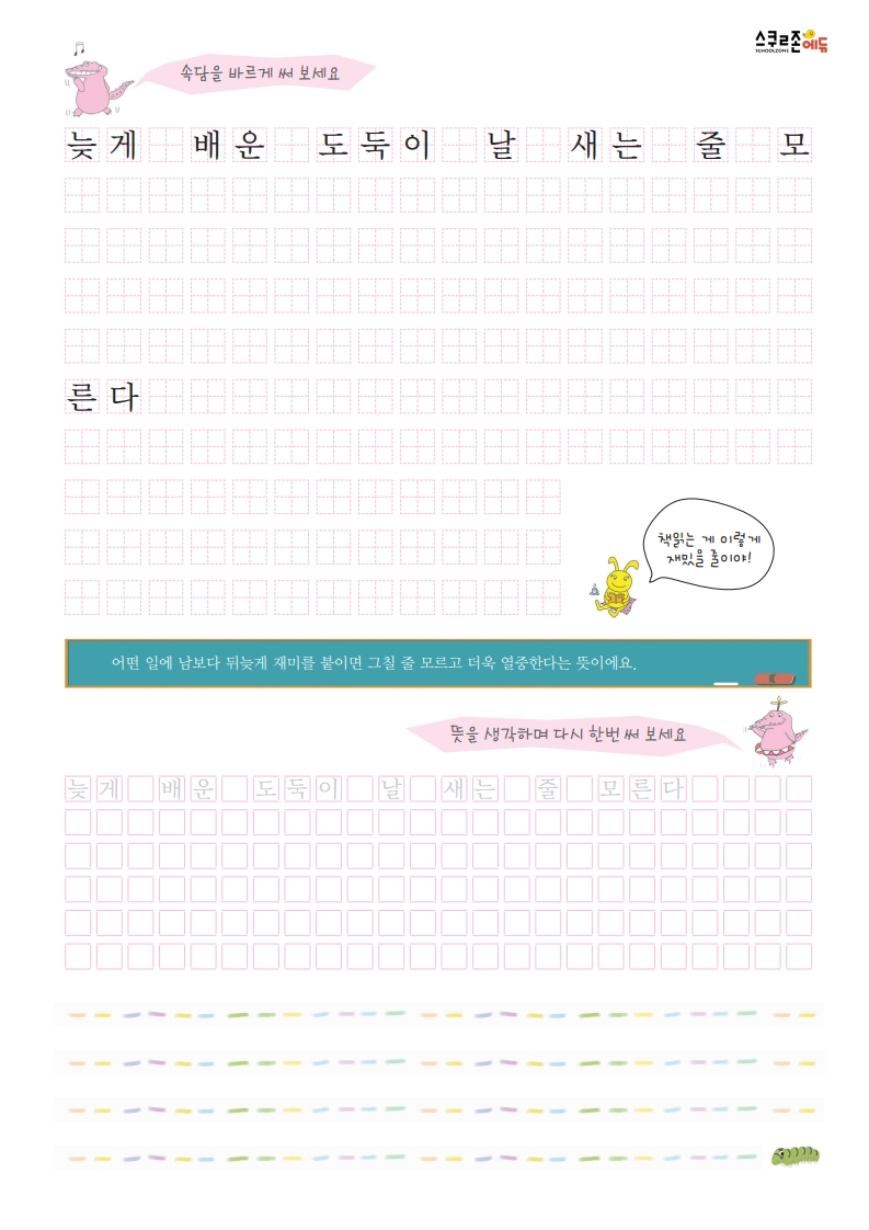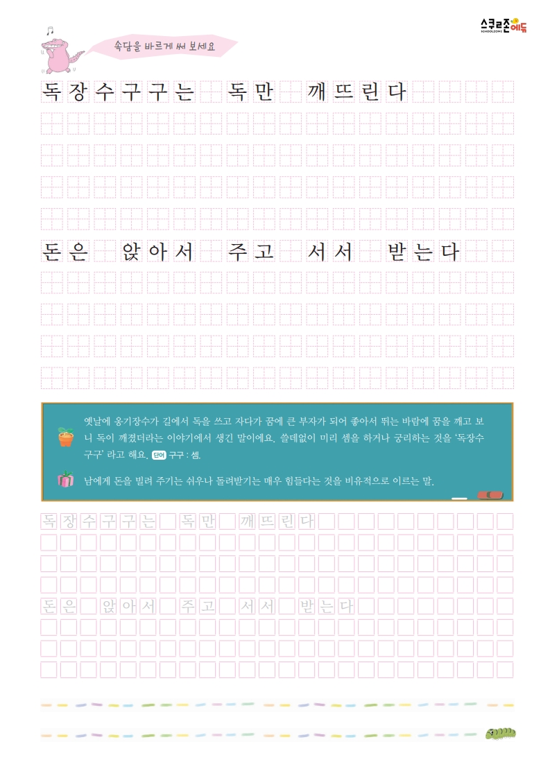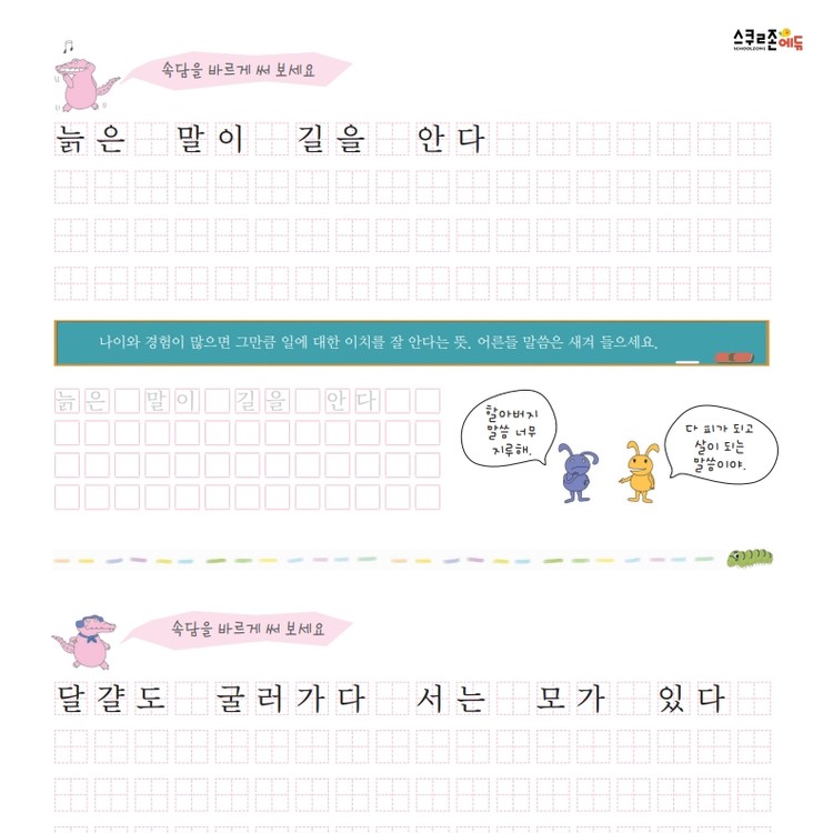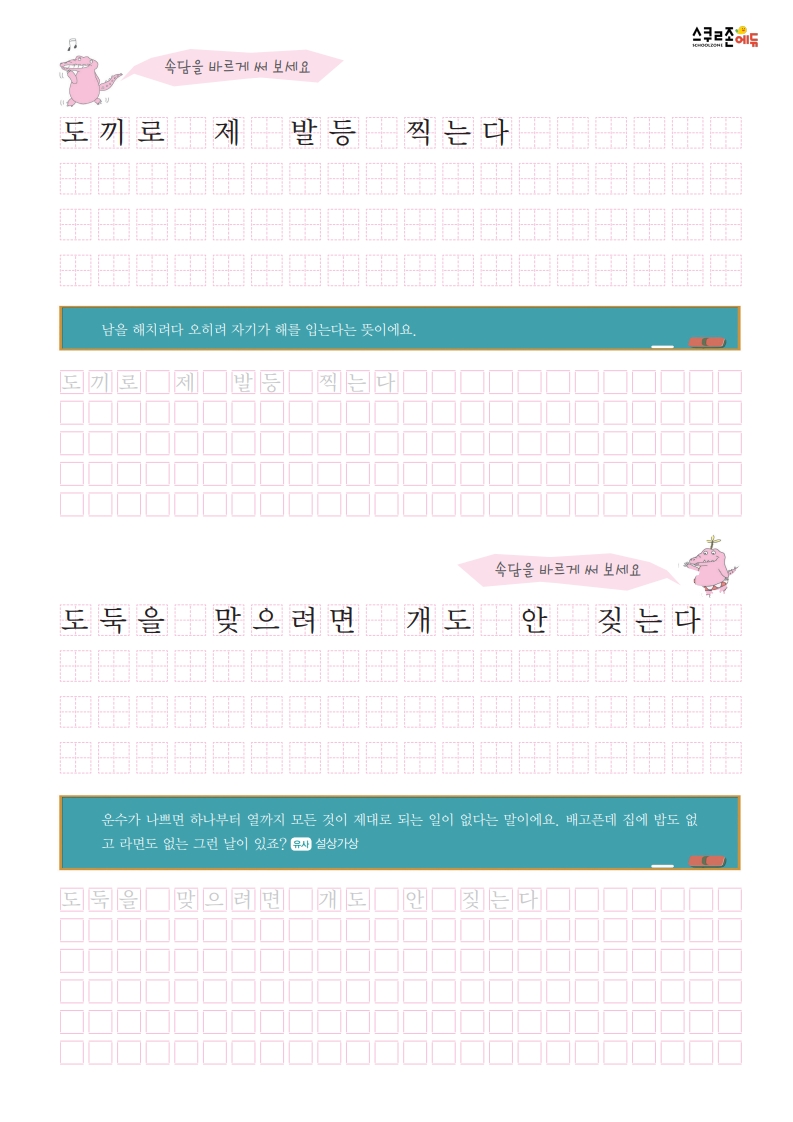 속담을 쓰며 글씨연습과 어휘력 향상을 동시에!