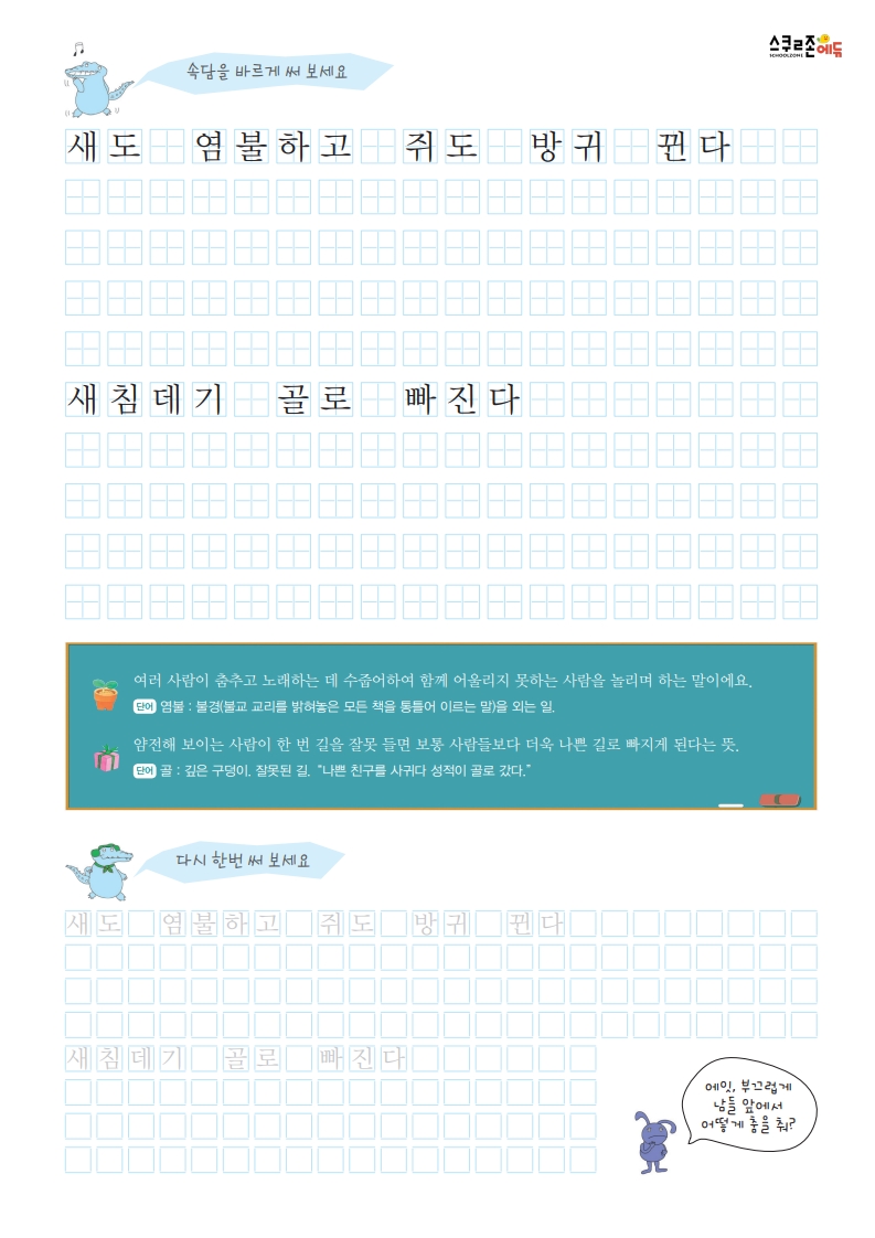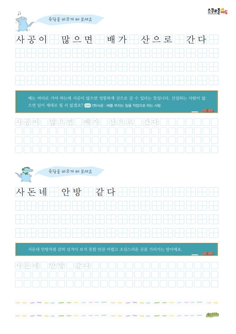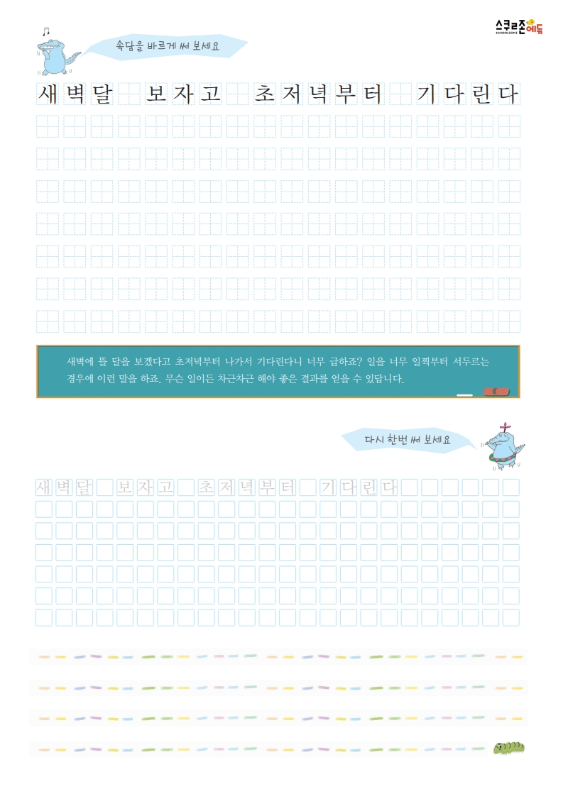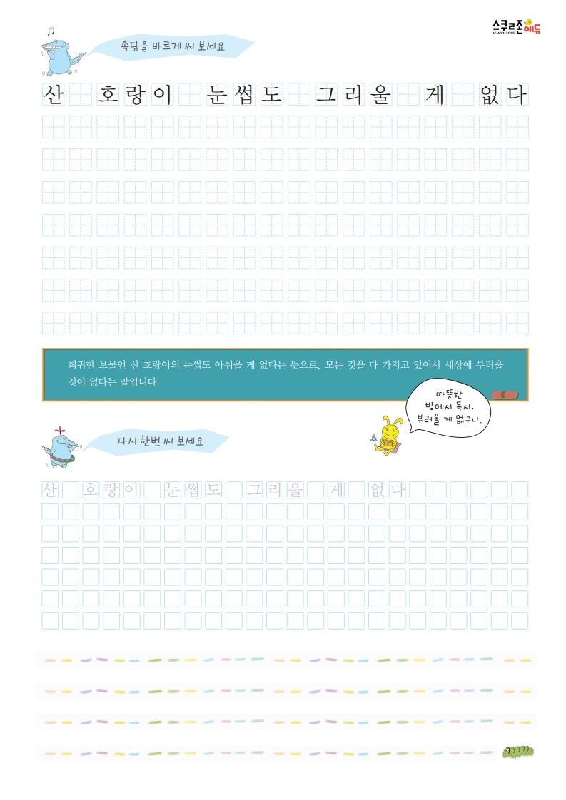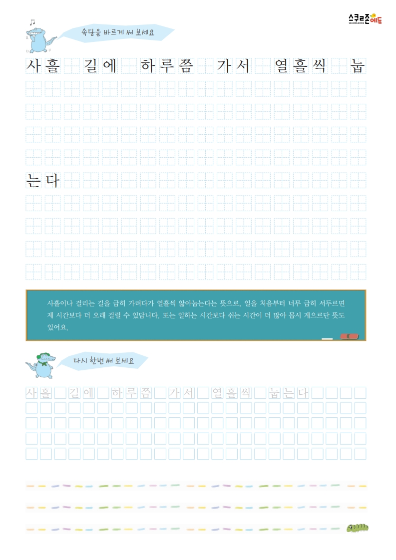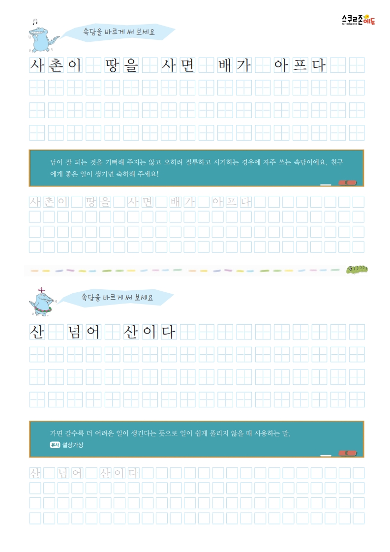 속담을 쓰며 글씨연습과 어휘력 향상을 동시에!
