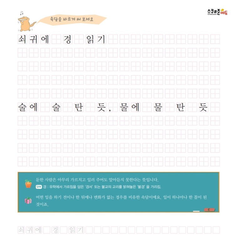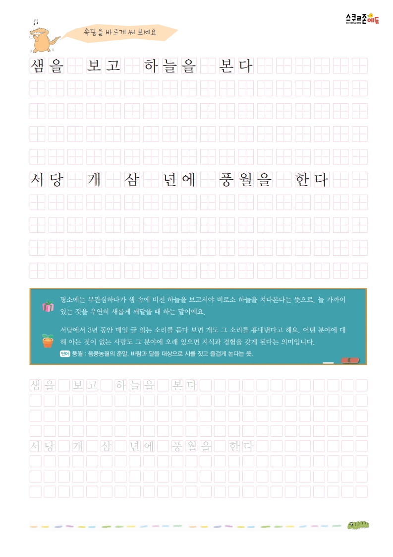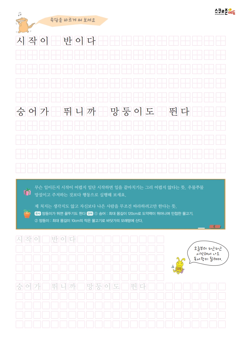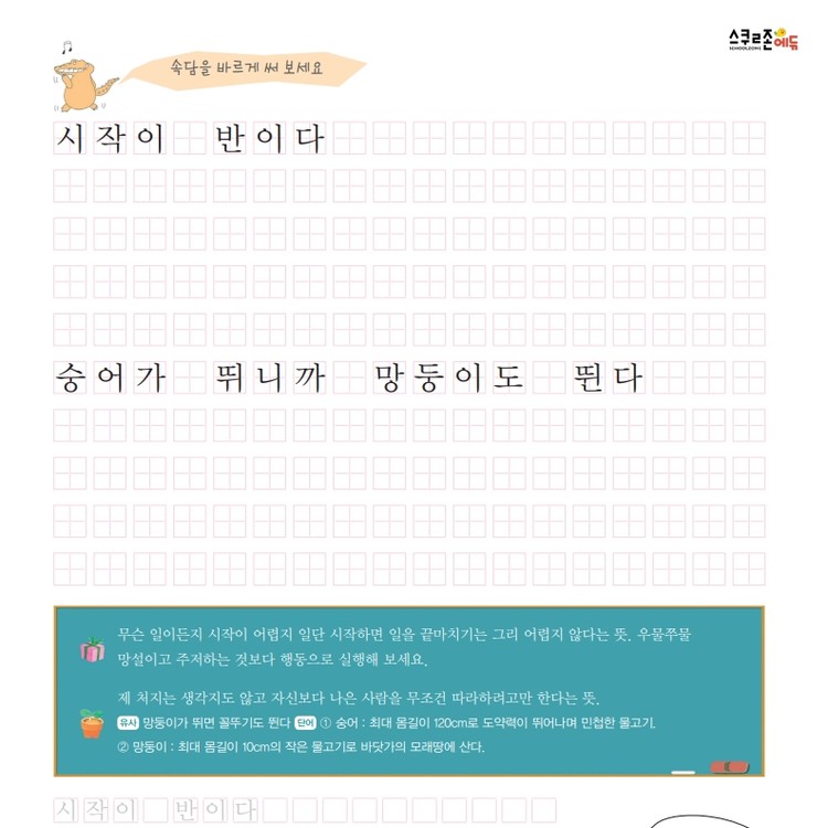 속담을 쓰며 글씨연습과 어휘력 향상을 동시에!