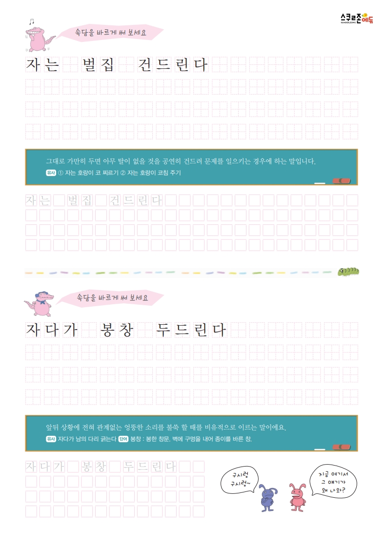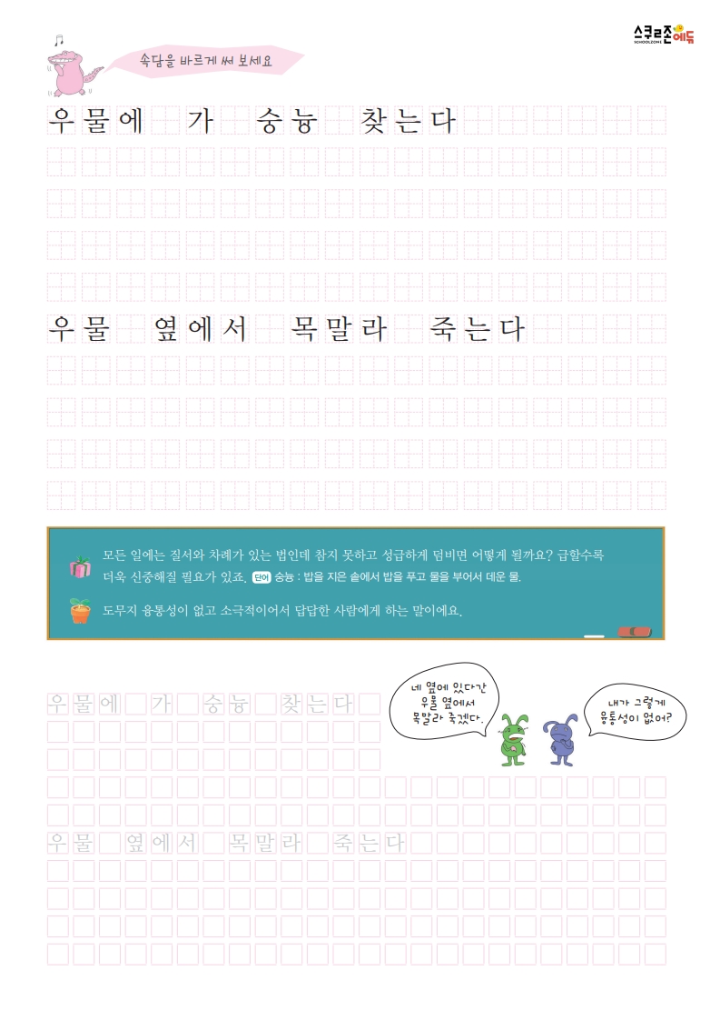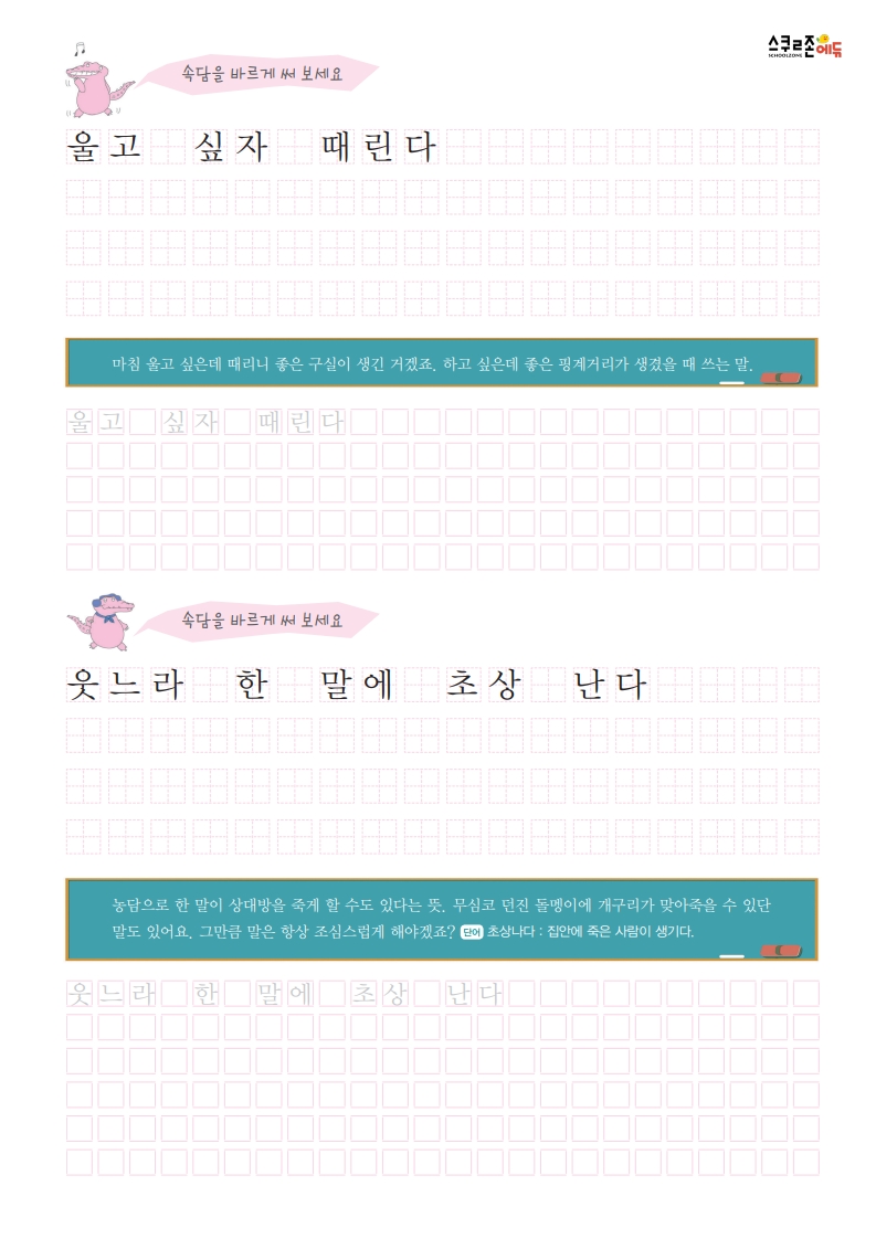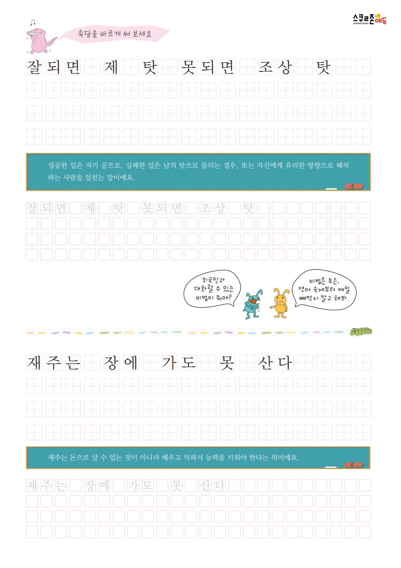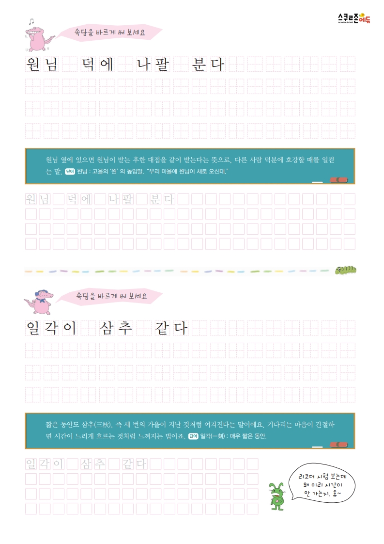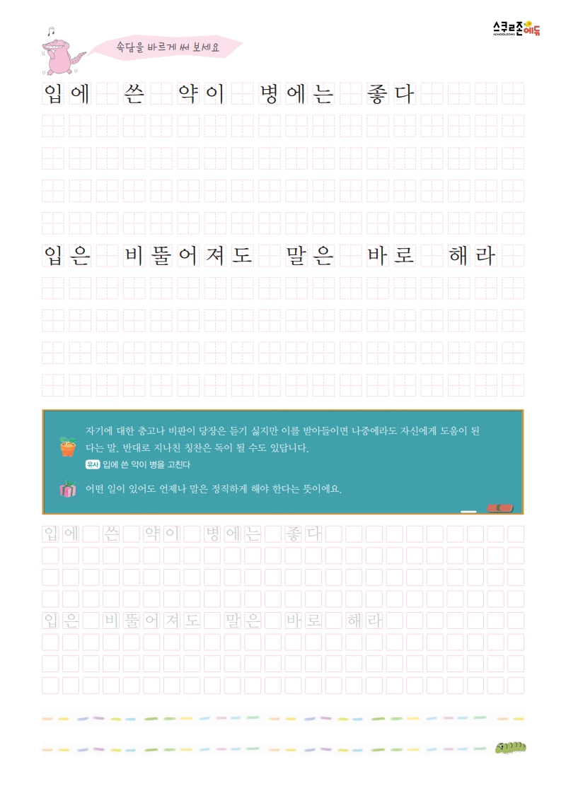 속담을 쓰며 글씨연습과 어휘력 향상을 동시에!