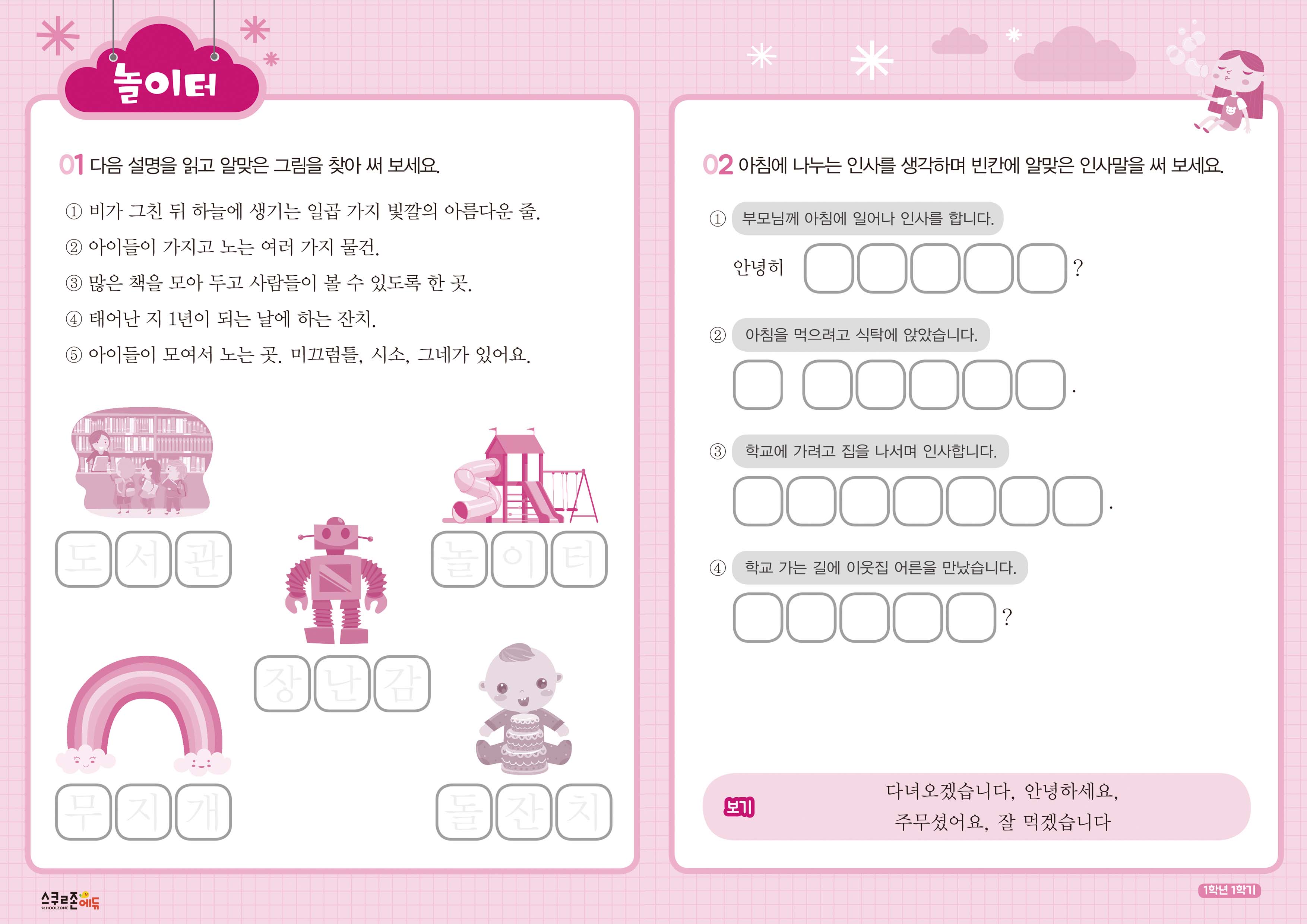 교과서 속에서 발췌한 낱말과 생활 속 표현을 함께 익힐 수 있으며,