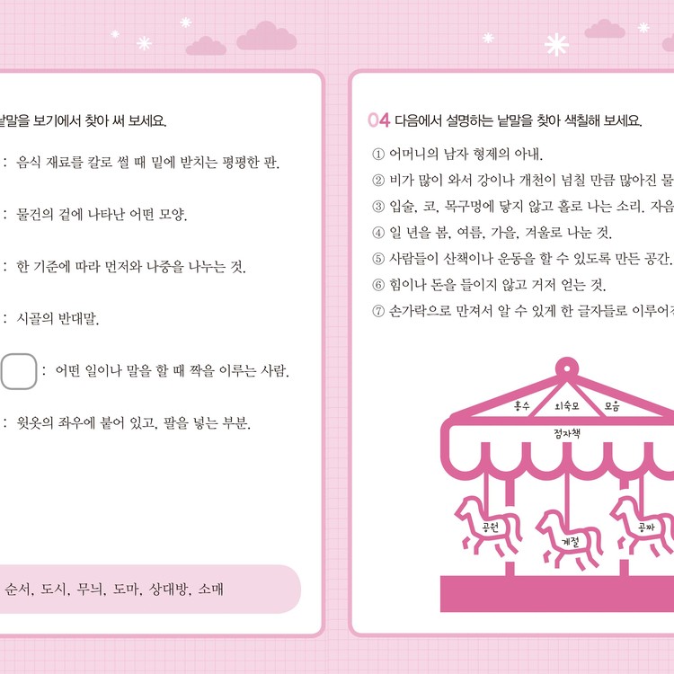교과서 속에서 발췌한 낱말과 생활 속 표현을 함께 익힐 수 있으며,