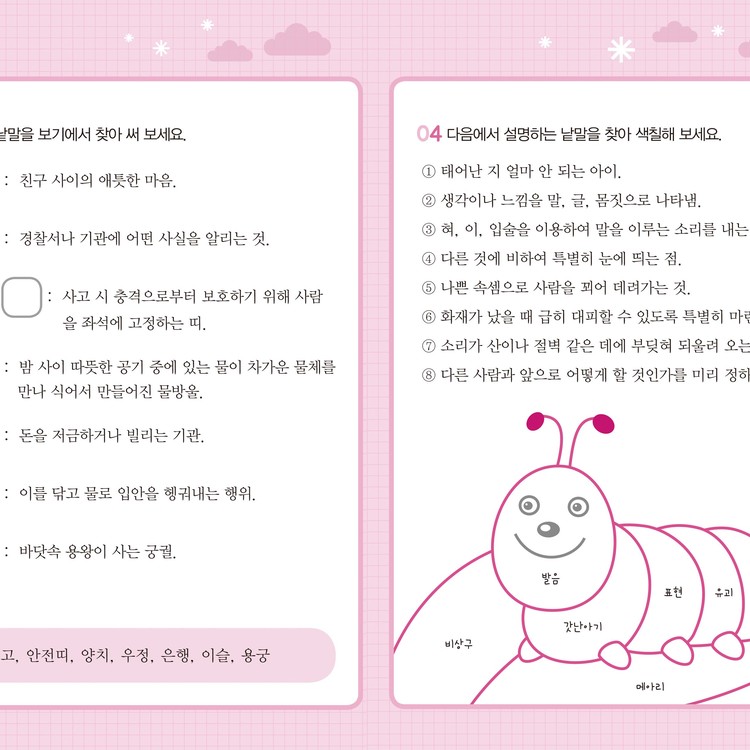 교과서 속에서 발췌한 낱말과 생활 속 표현을 함께 익힐 수 있으며,