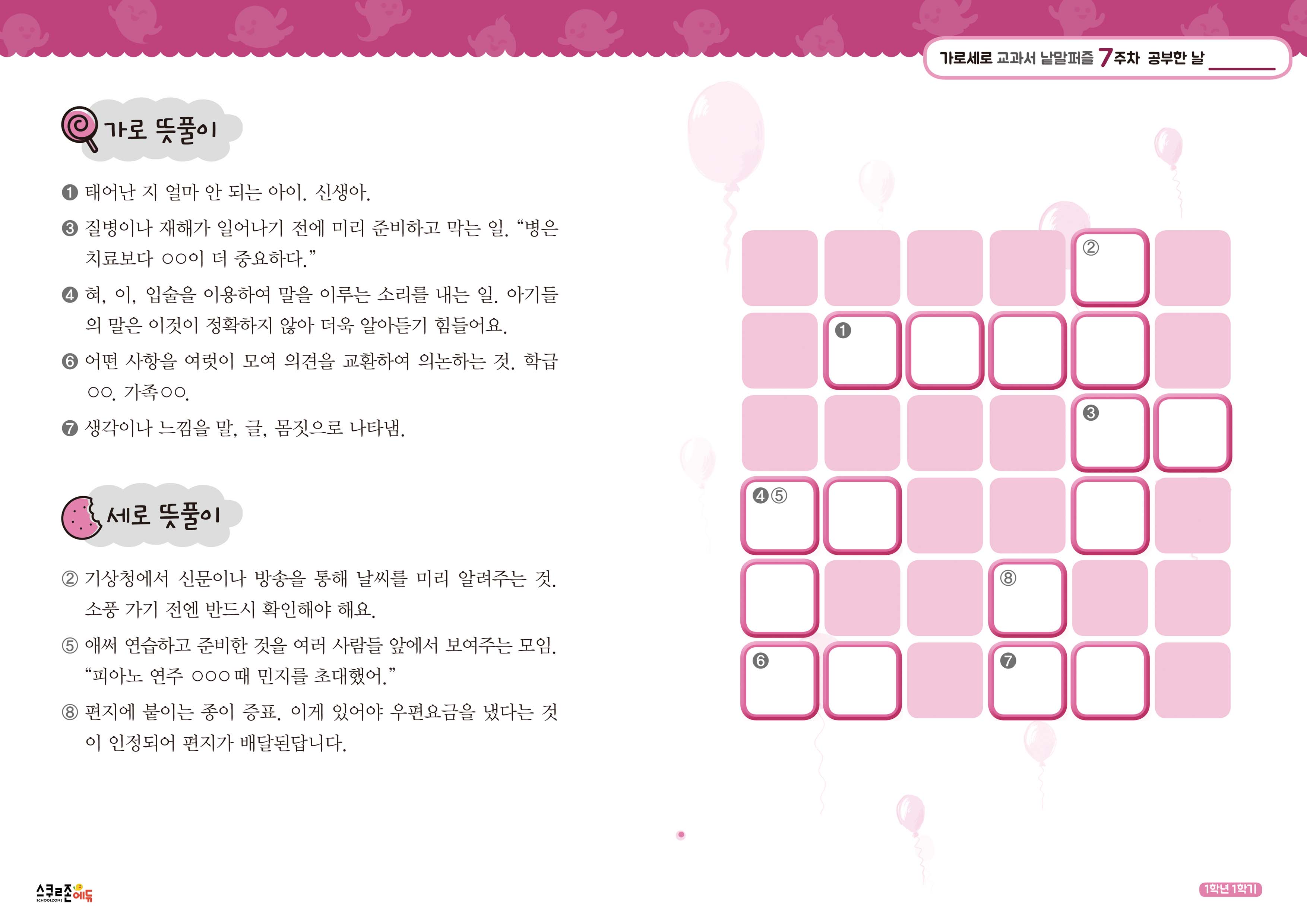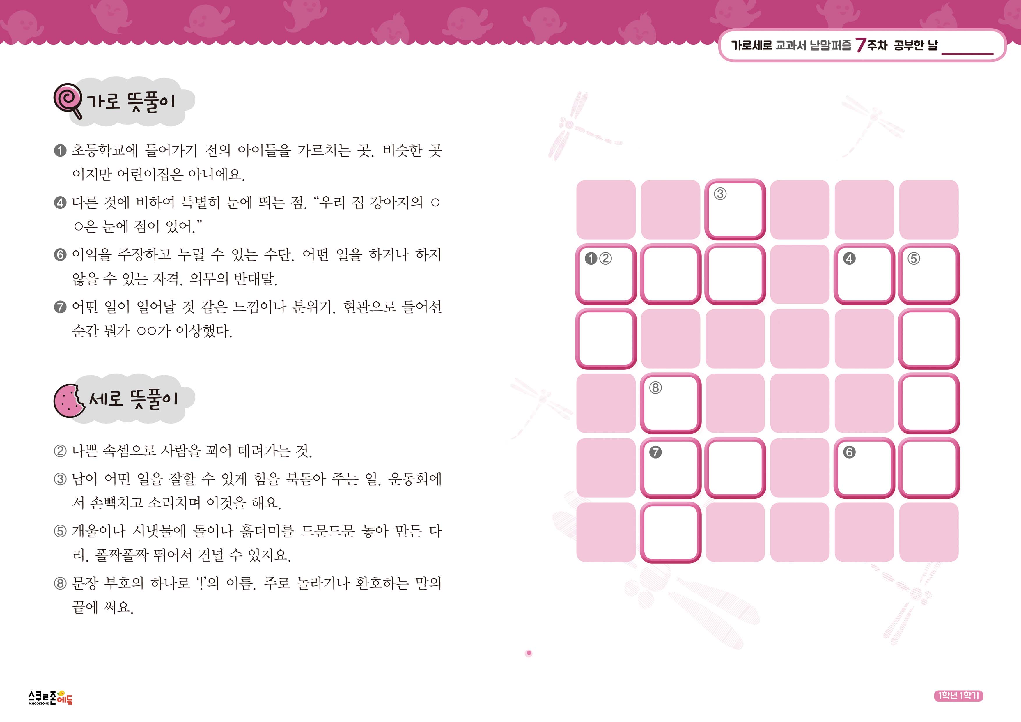 가로세로 낱말퍼즐 1-1 7주차 시트지