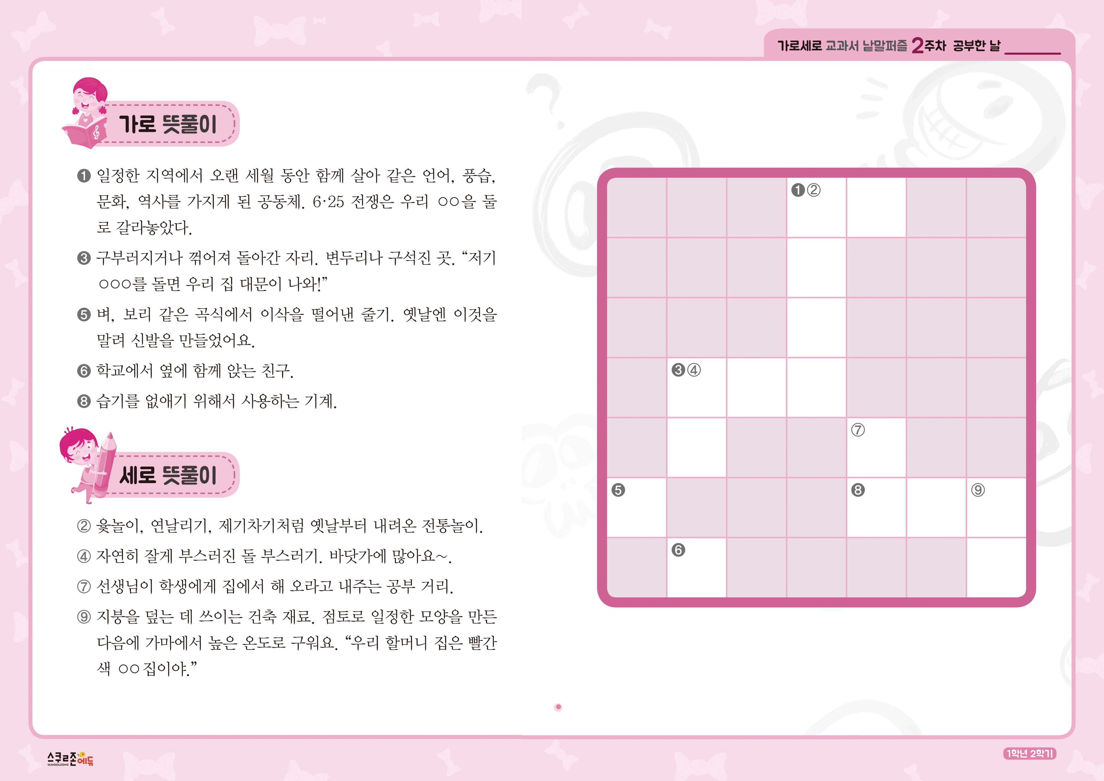 가로세로 낱말퍼즐 1-2 2주차 시트지