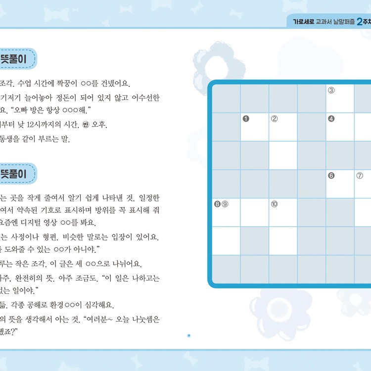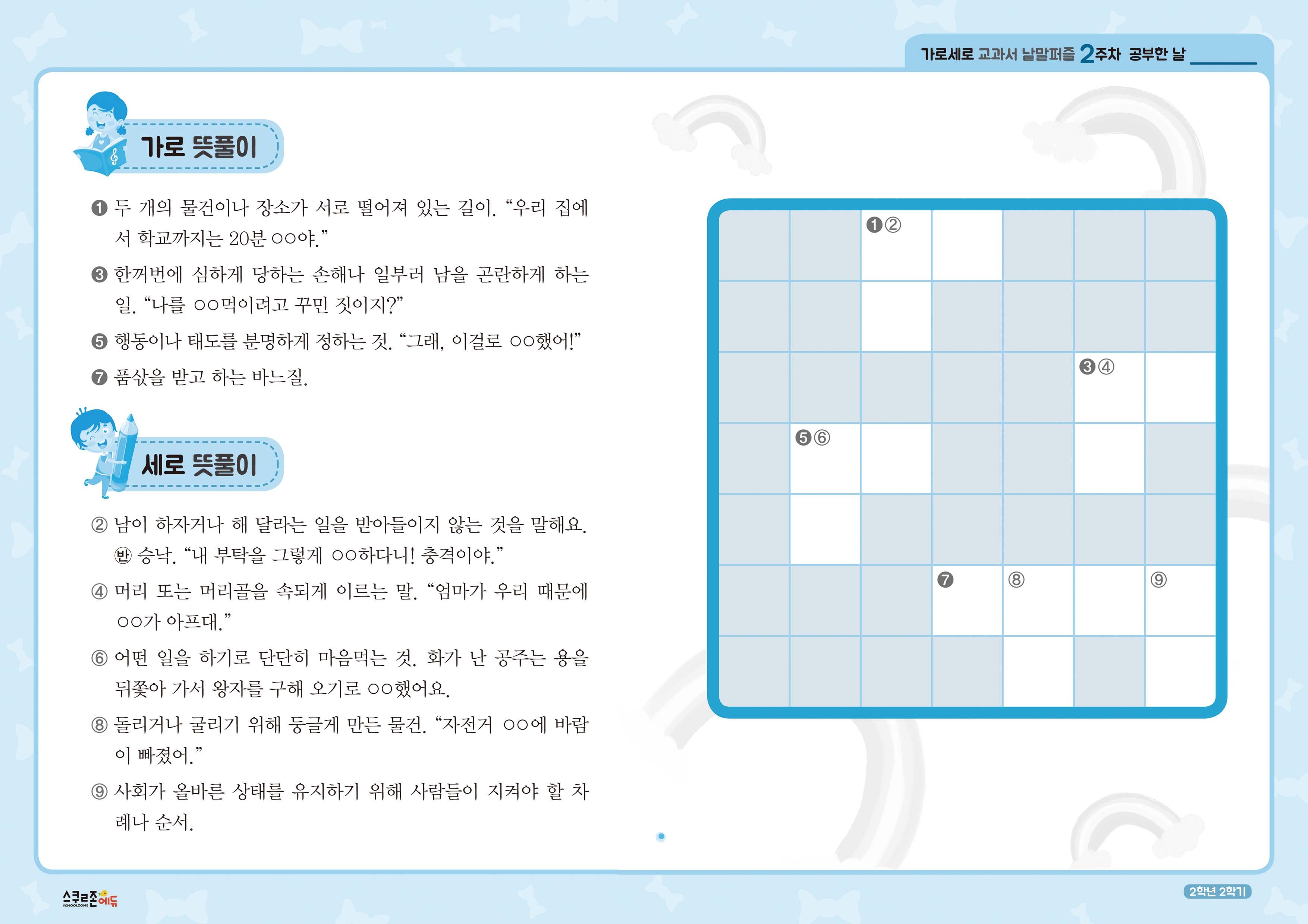 가로세로 낱말퍼즐 2-2 2주차 시트지