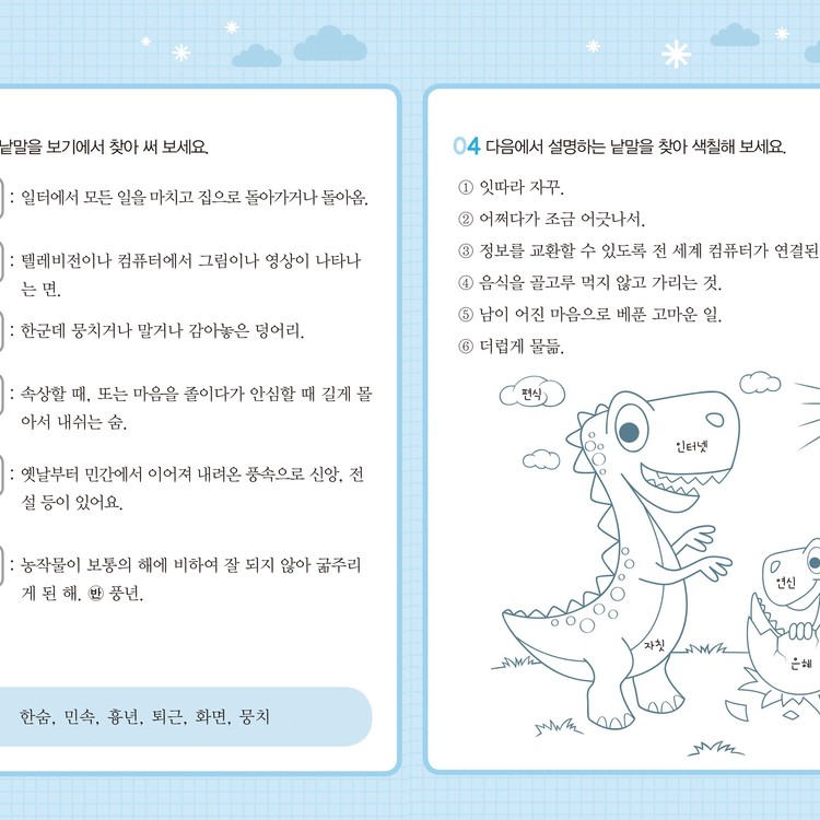 교과서 속에서 발췌한 낱말과 생활 속 표현을 함께 익힐 수 있으며,