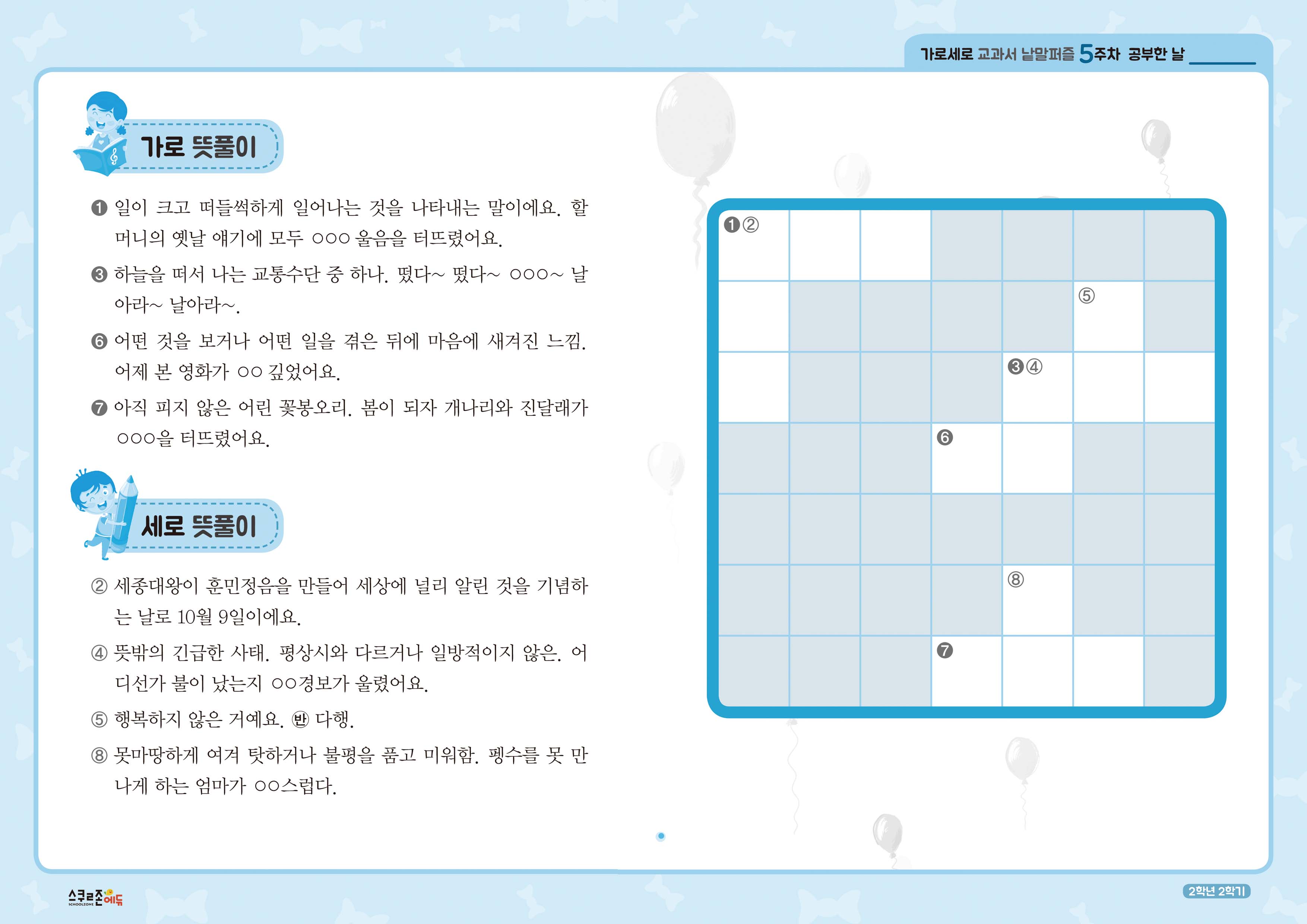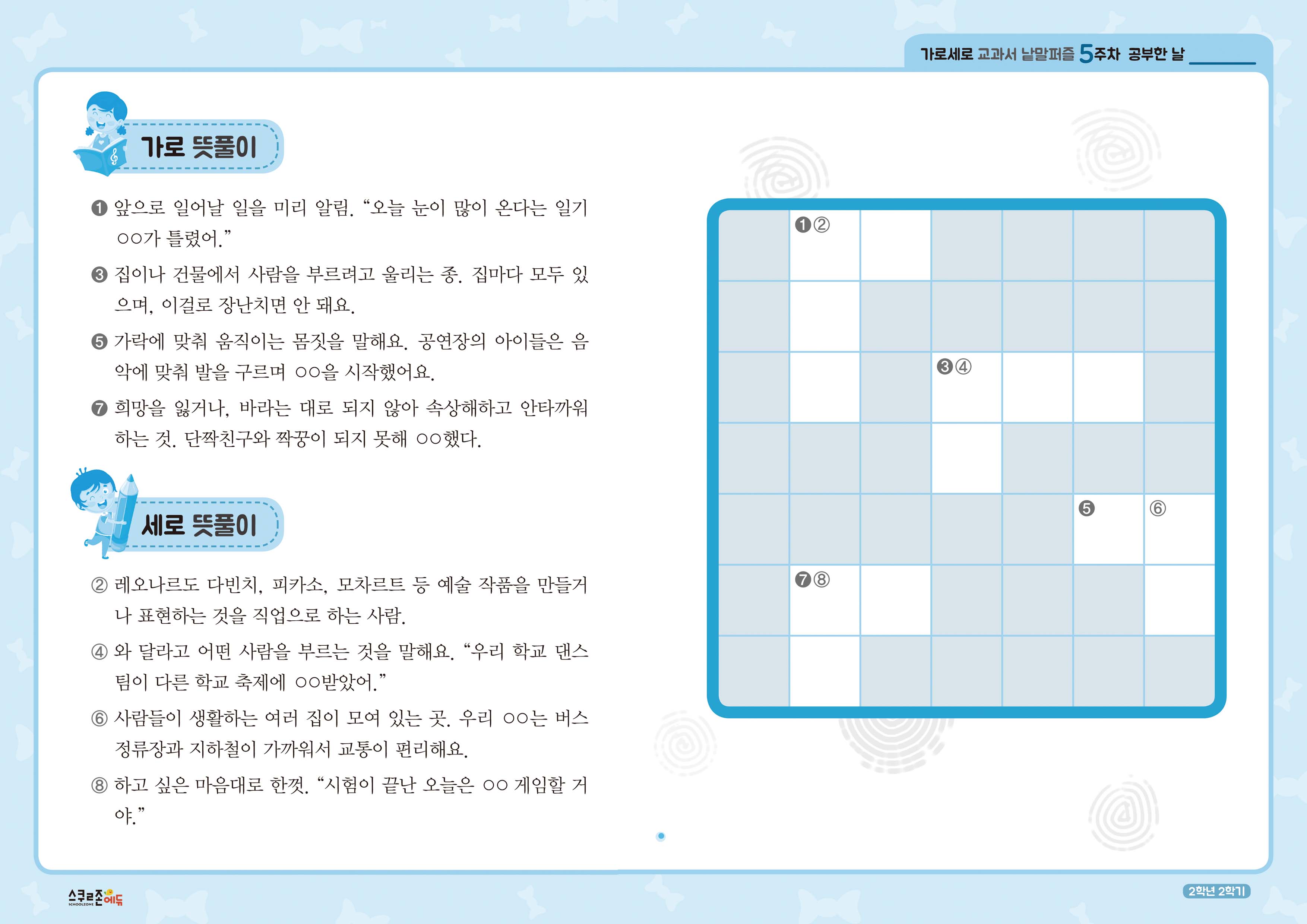 가로세로 낱말퍼즐 2-2 5주차 시트지