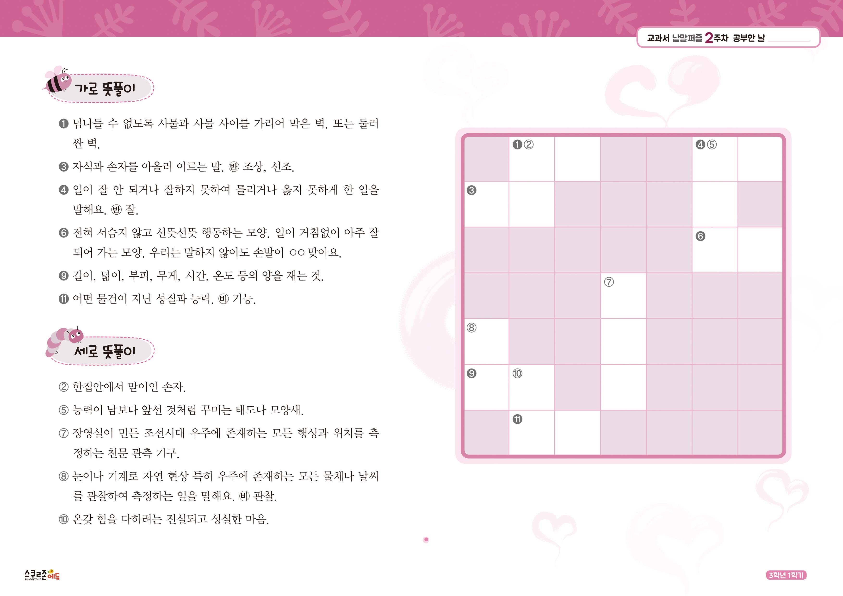 가로세로 낱말퍼즐 3-1 2주차 시트지