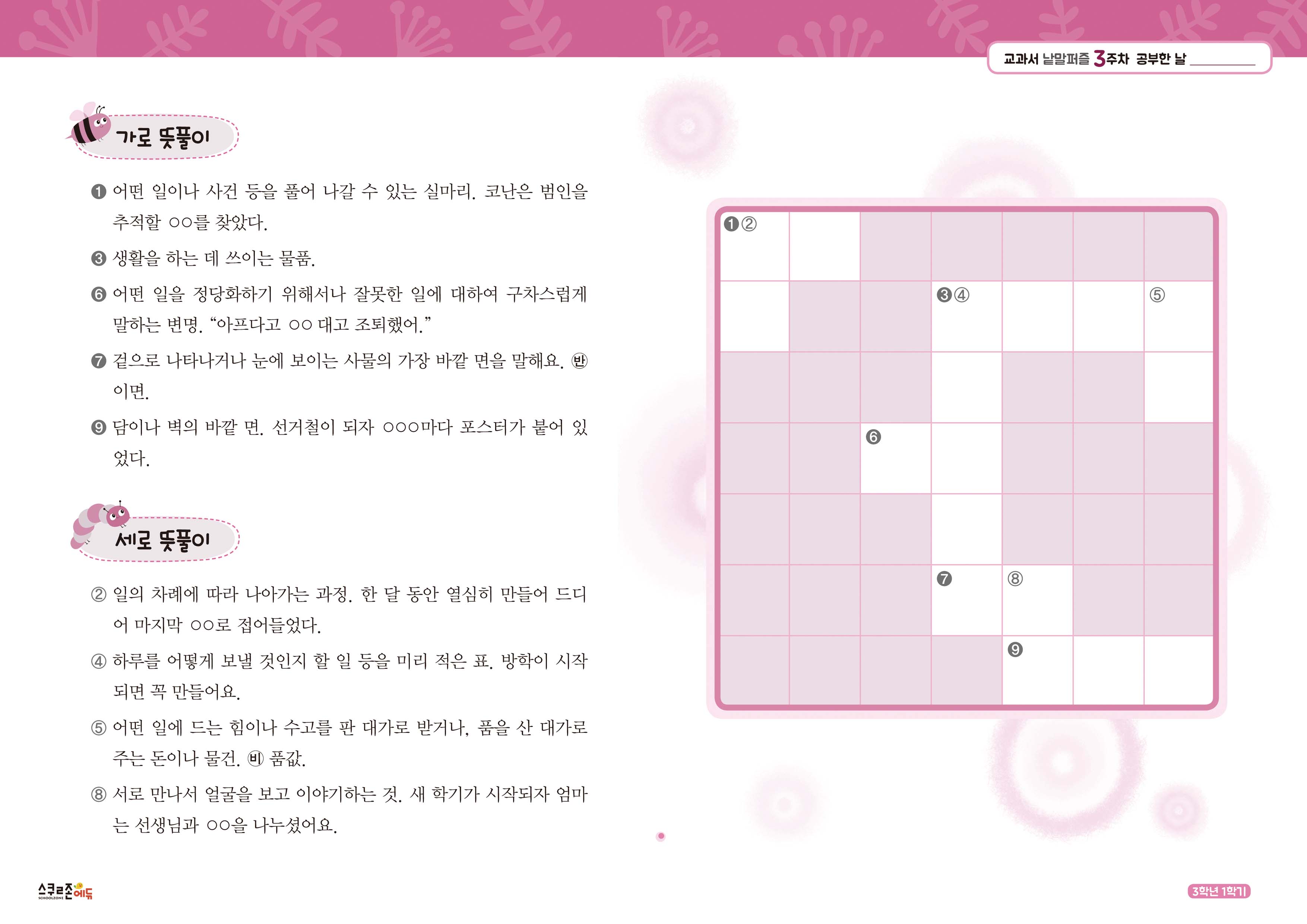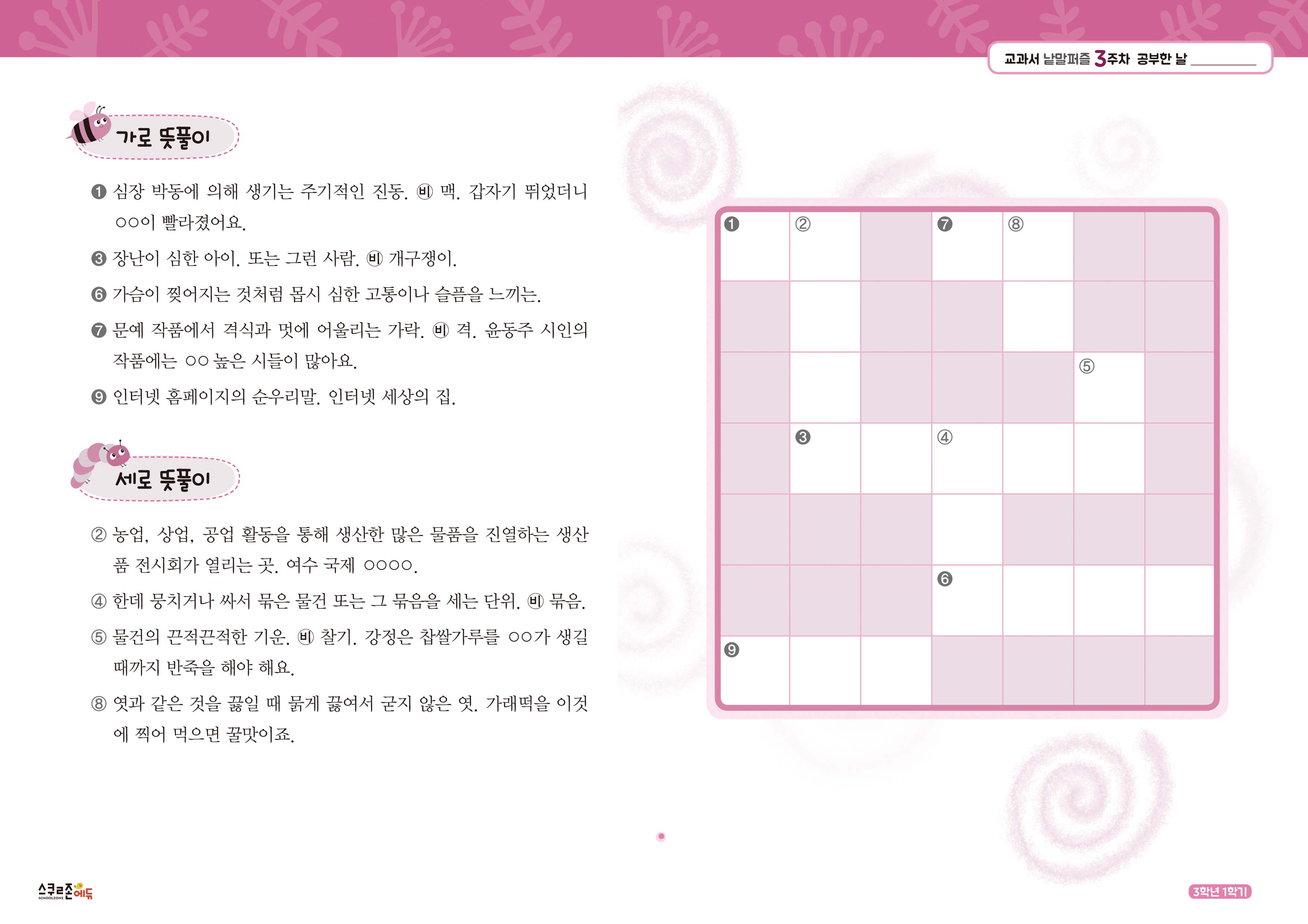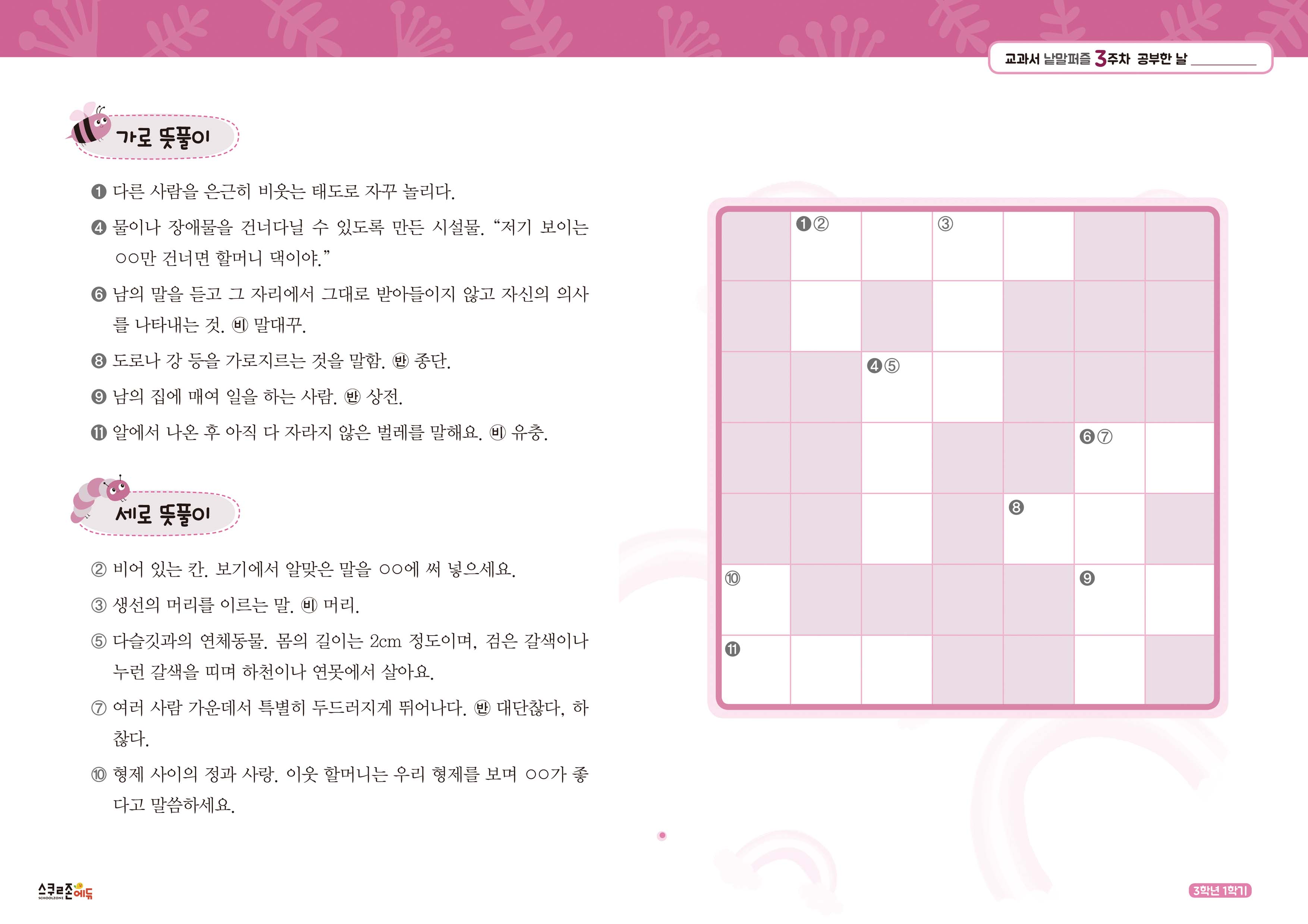 가로세로 낱말퍼즐 3-1 3주차 시트지