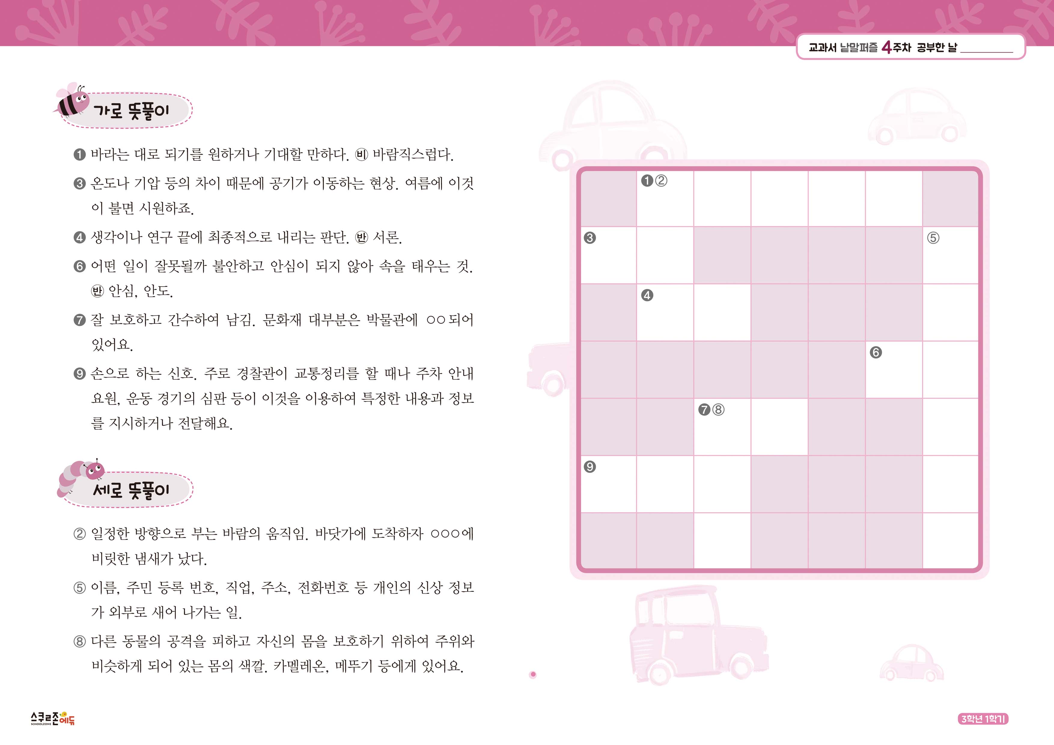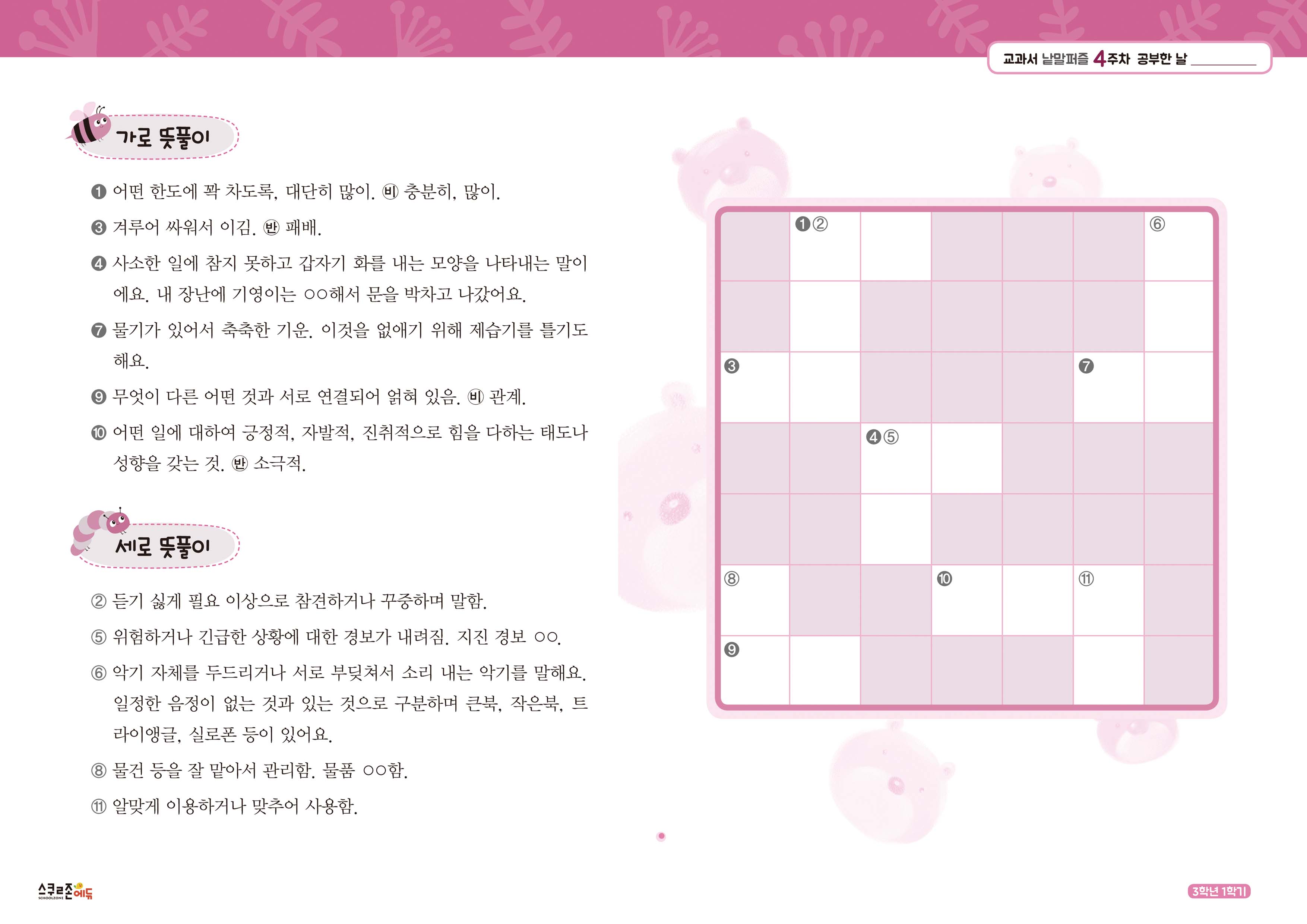 가로세로 낱말퍼즐 3-1 4주차 시트지