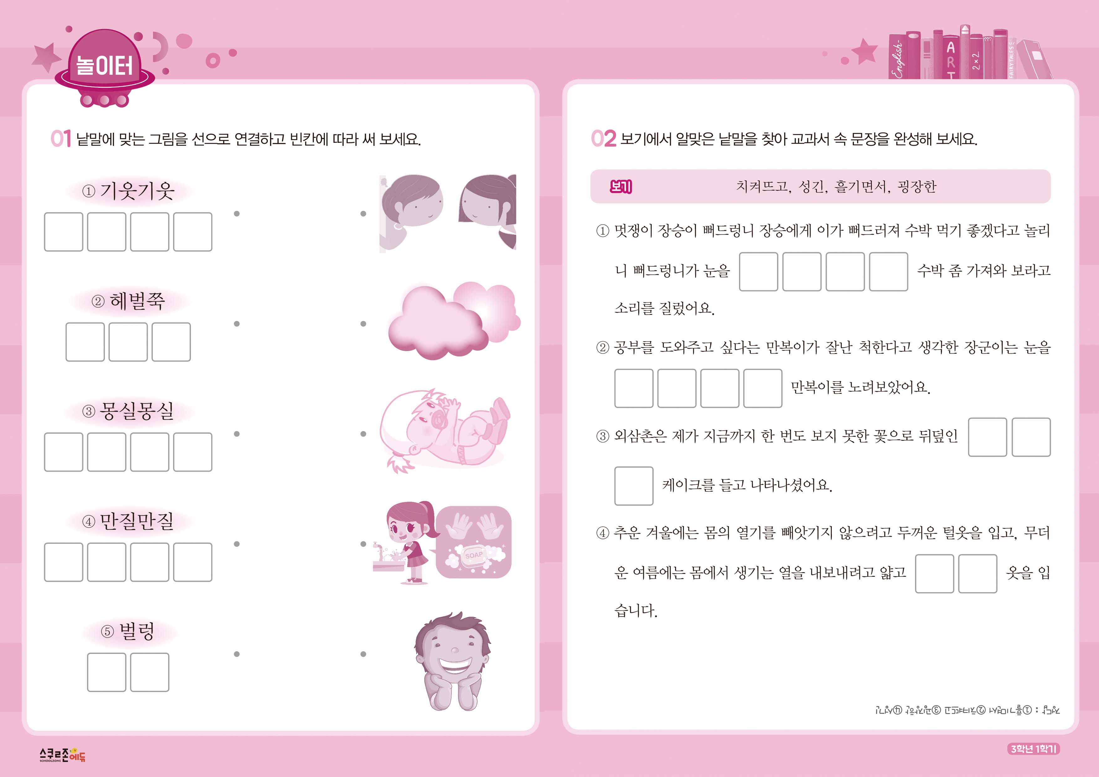 교과서 속에서 발췌한 낱말과 생활 속 표현을 함께 익힐 수 있으며,