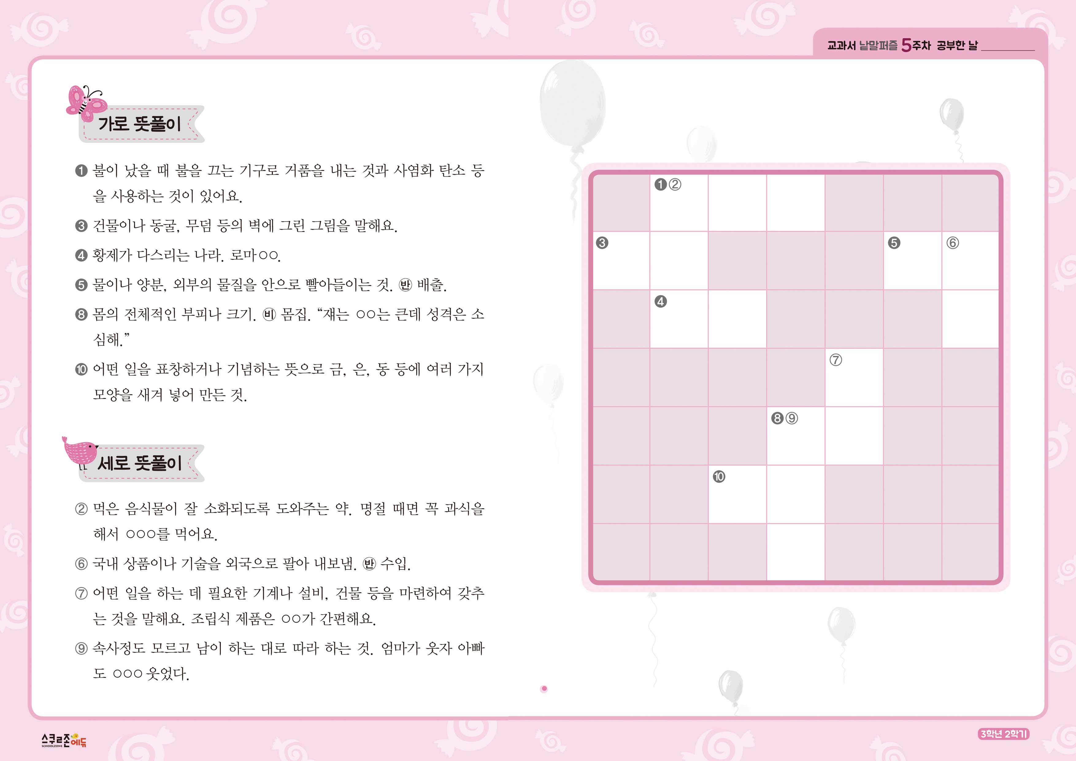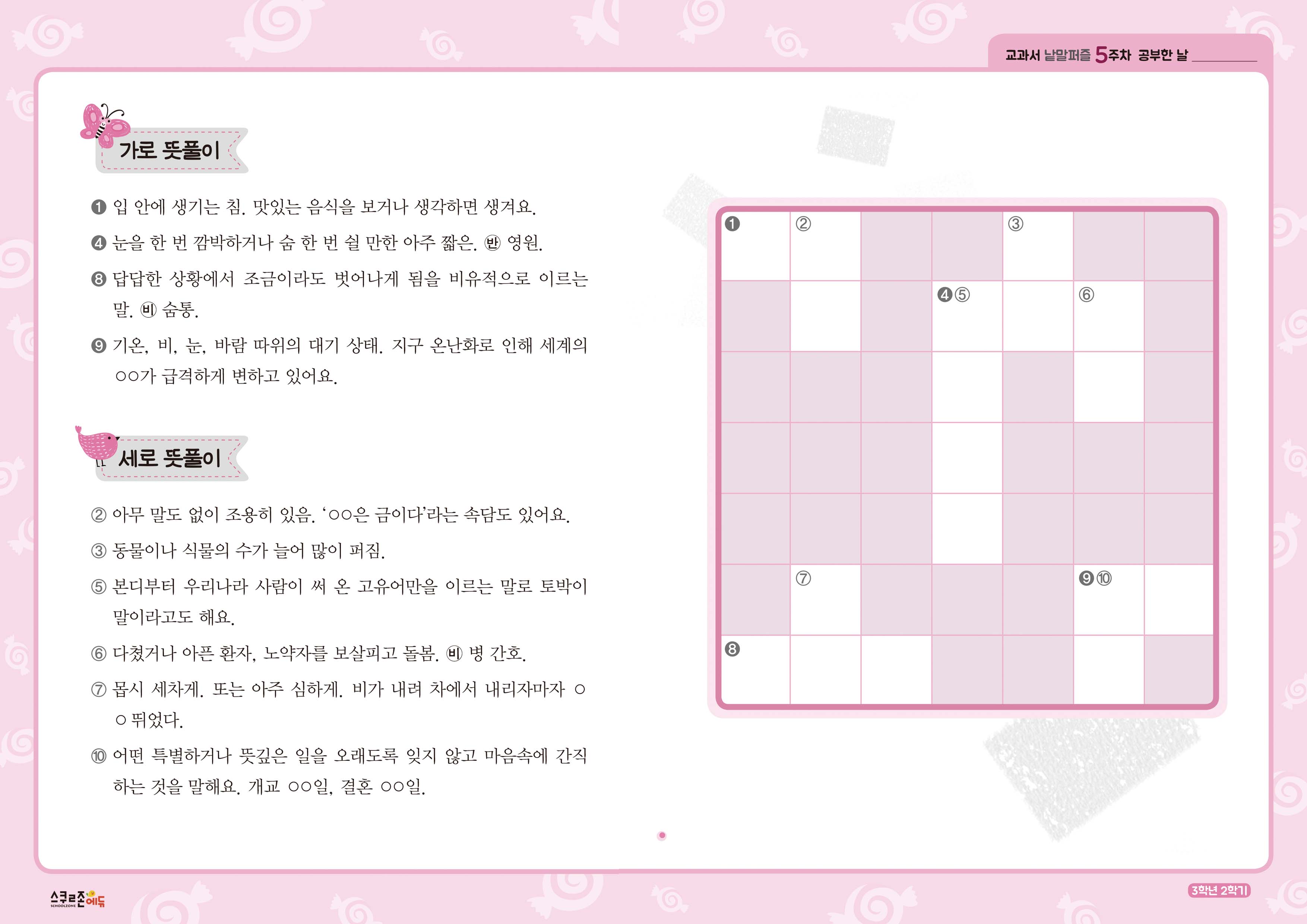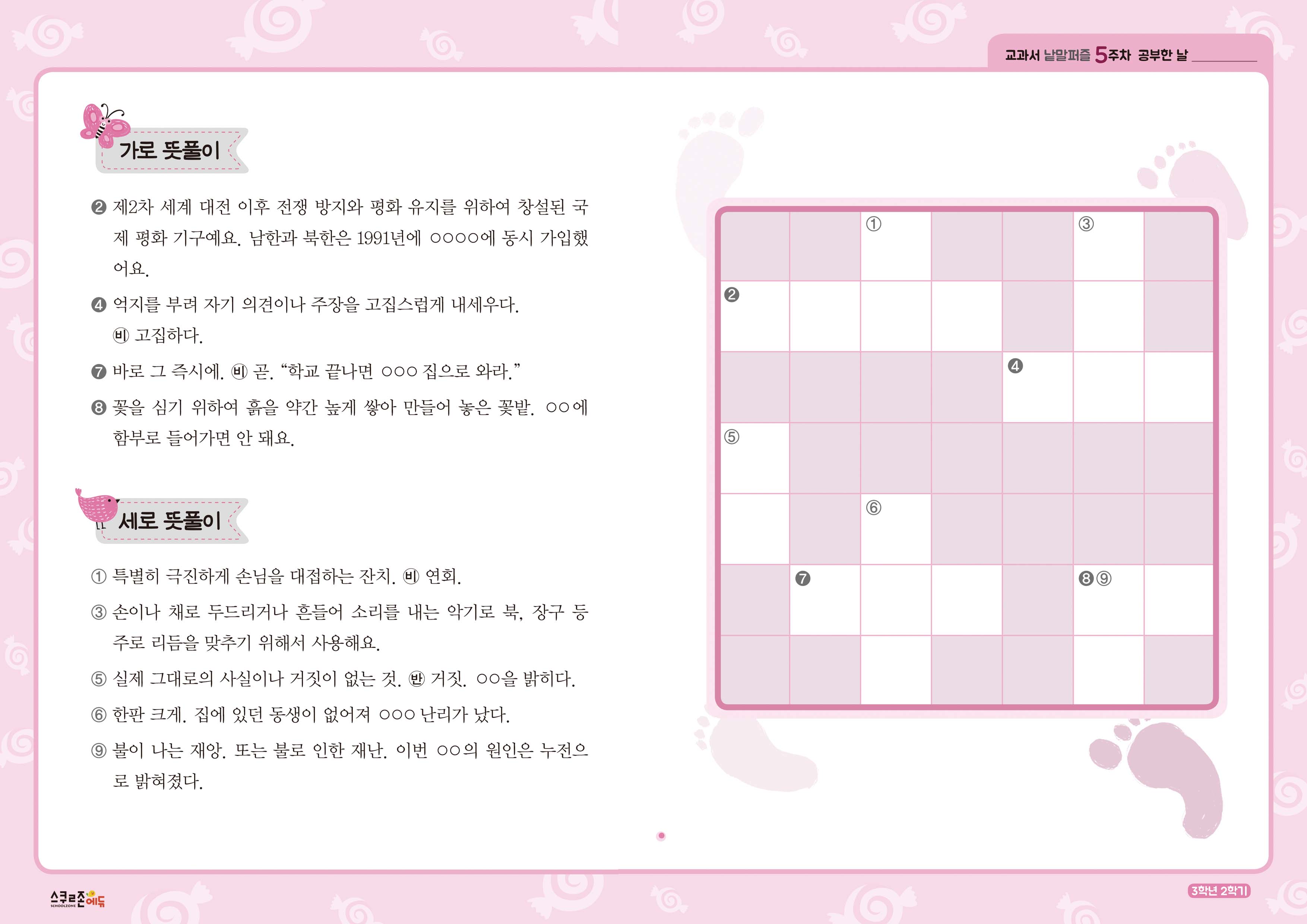 가로세로 낱말퍼즐 3-2 5주차 시트지
