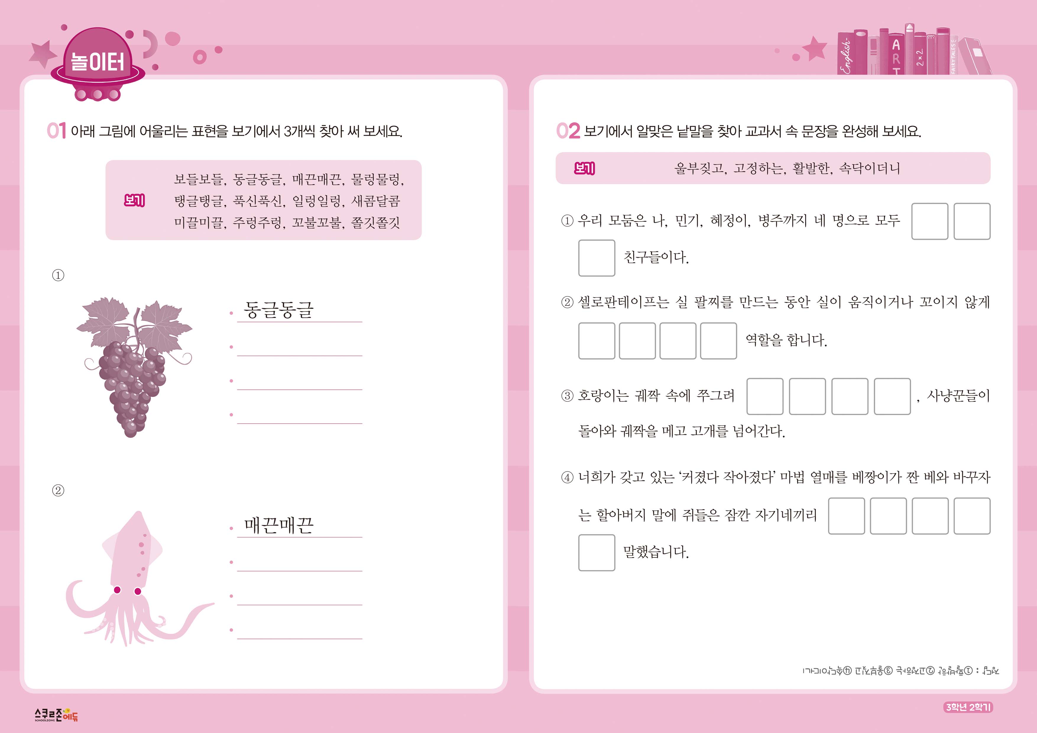 교과서 속에서 발췌한 낱말과 생활 속 표현을 함께 익힐 수 있으며,