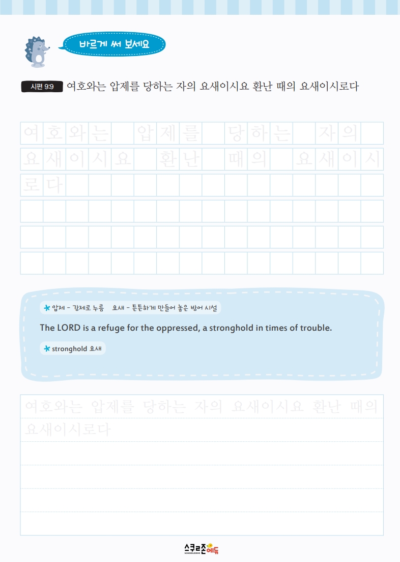 읽고, 쓰고, 암송하는 과정을 통해 말씀을 내면화하고 자존감과 표현력이 향상됩니다.