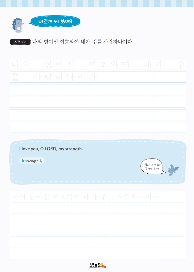 꾸준한 따라쓰기로 올바른 습관과 성품을 기를 수 있습니다.