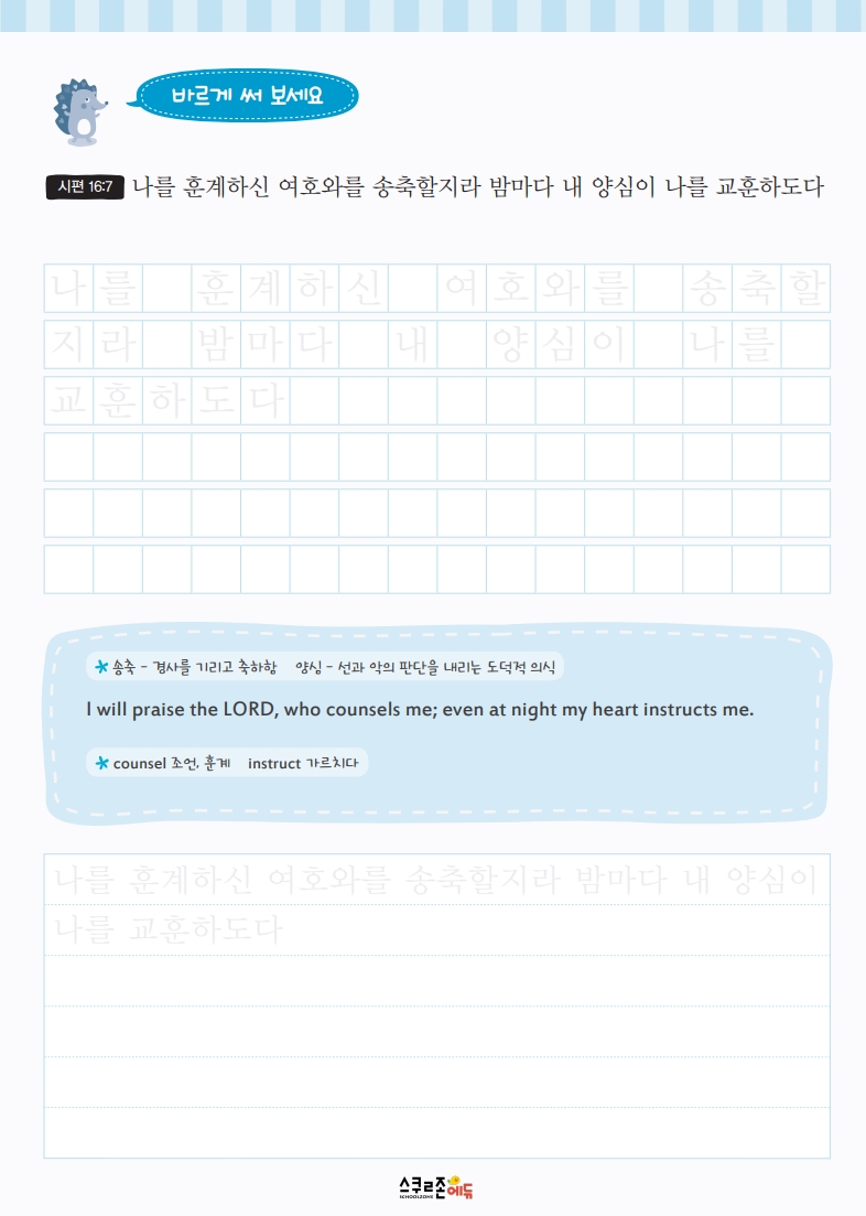 <시편>의 말씀을 따라 쓰며 바른 글씨체와 문학적 표현력을 함께 키웁니다.