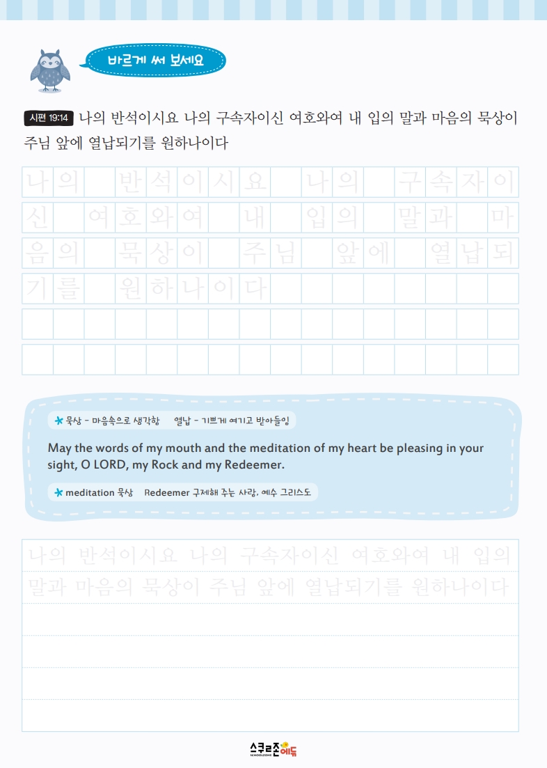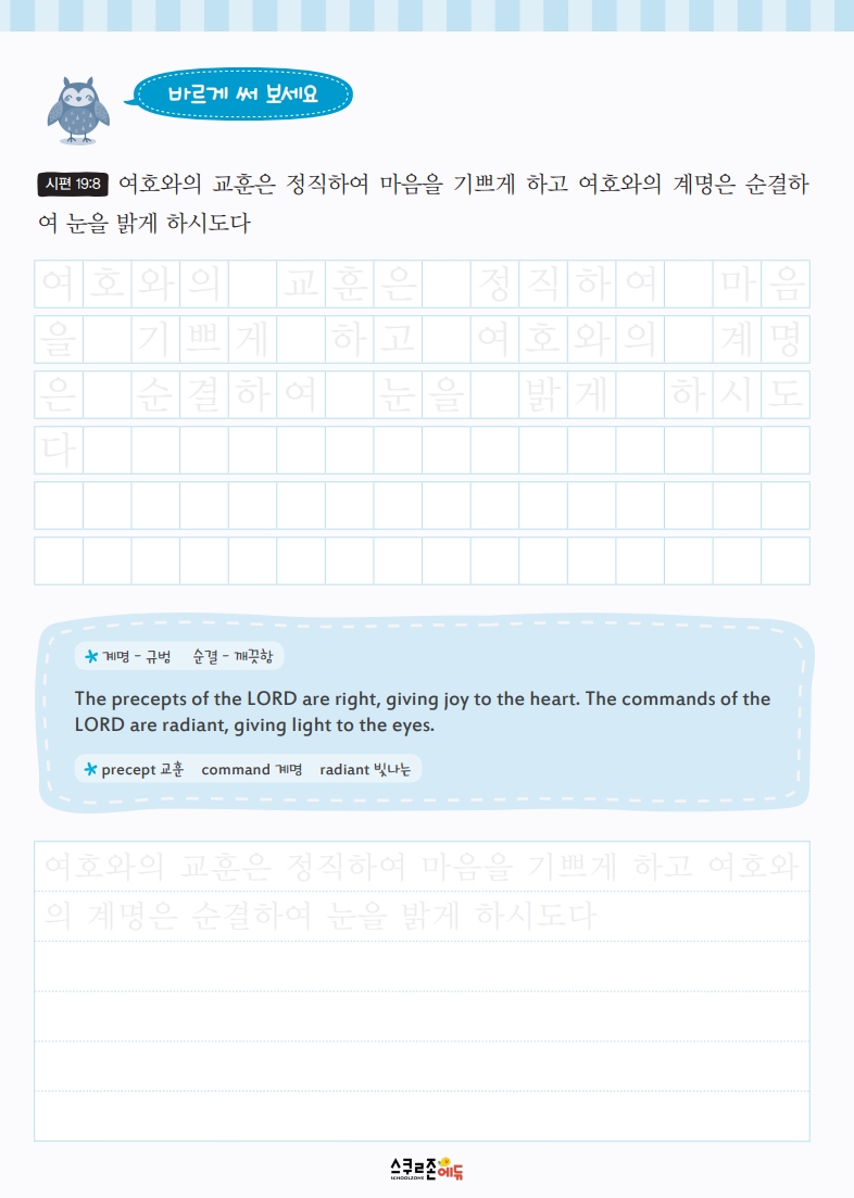 읽고, 쓰고, 암송하는 과정을 통해 말씀을 내면화하고 자존감과 표현력이 향상됩니다.