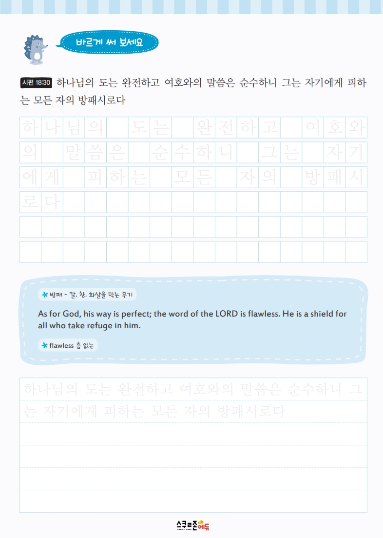 <시편>의 말씀을 따라 쓰며 바른 글씨체와 문학적 표현력을 함께 키웁니다.