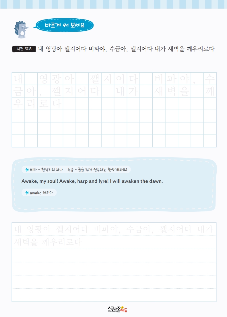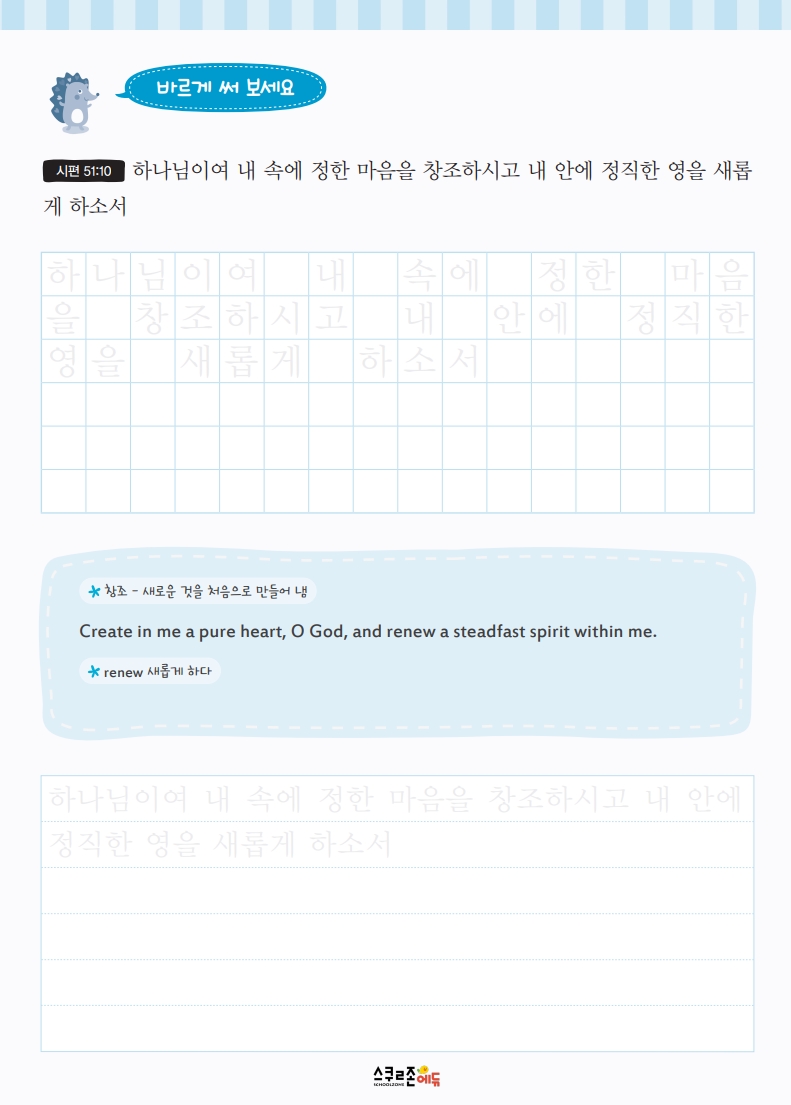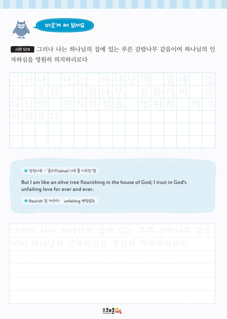<시편>의 말씀을 따라 쓰며 바른 글씨체와 문학적 표현력을 함께 키웁니다.