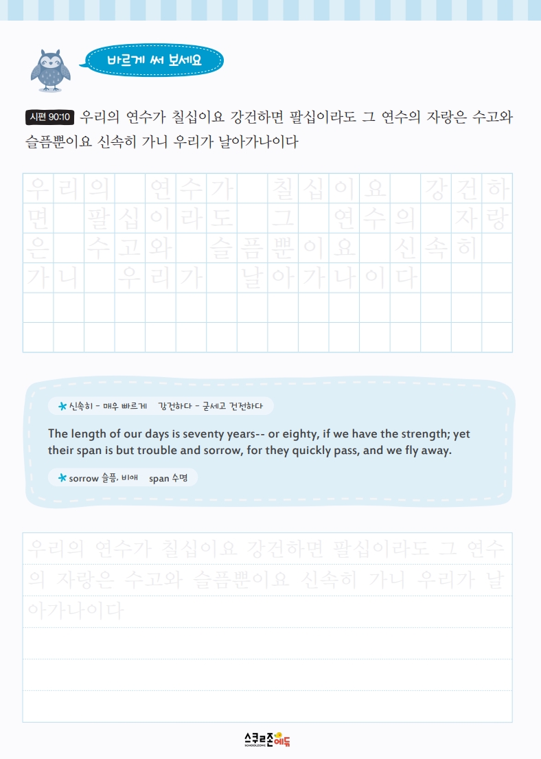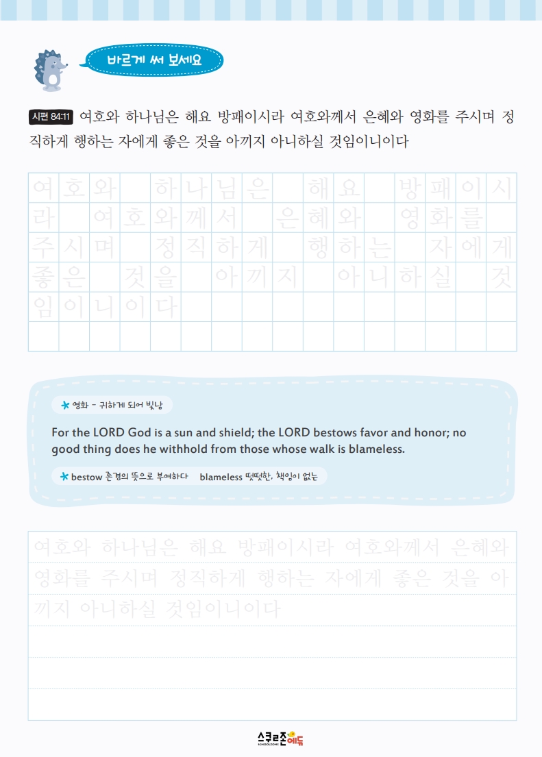 <시편>의 말씀을 따라 쓰며 바른 글씨체와 문학적 표현력을 함께 키웁니다.