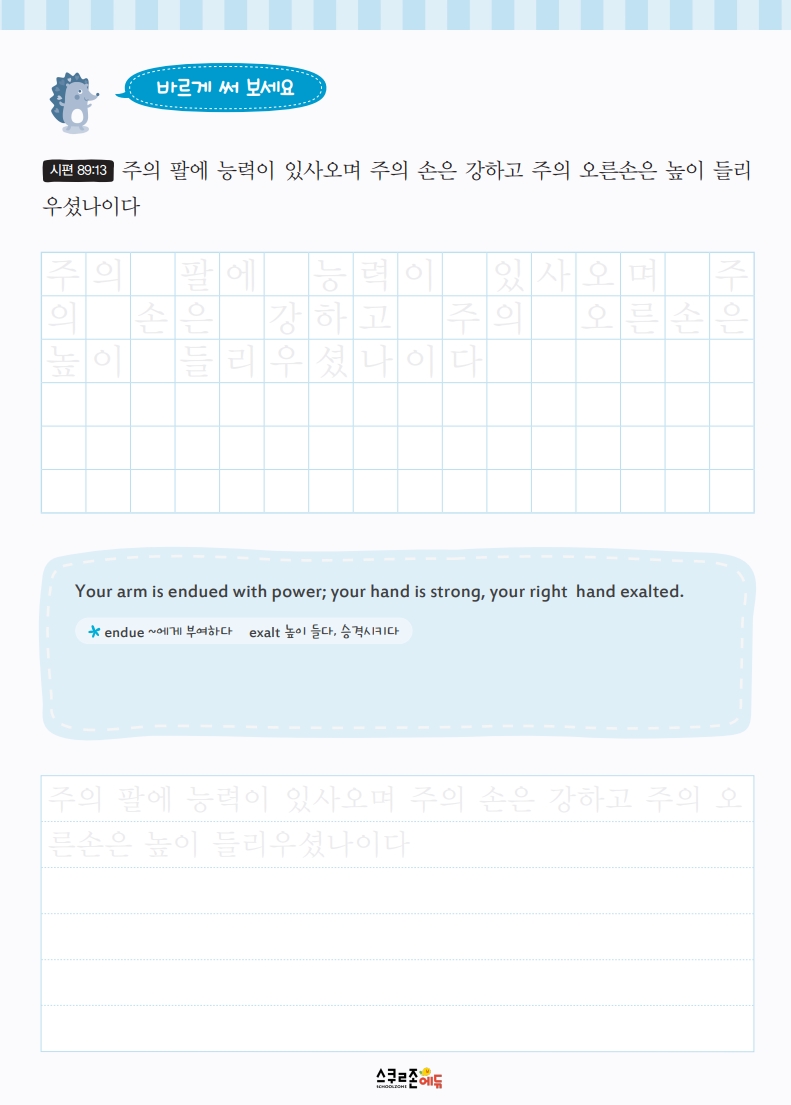 읽고, 쓰고, 암송하는 과정을 통해 말씀을 내면화하고 자존감과 표현력이 향상됩니다.