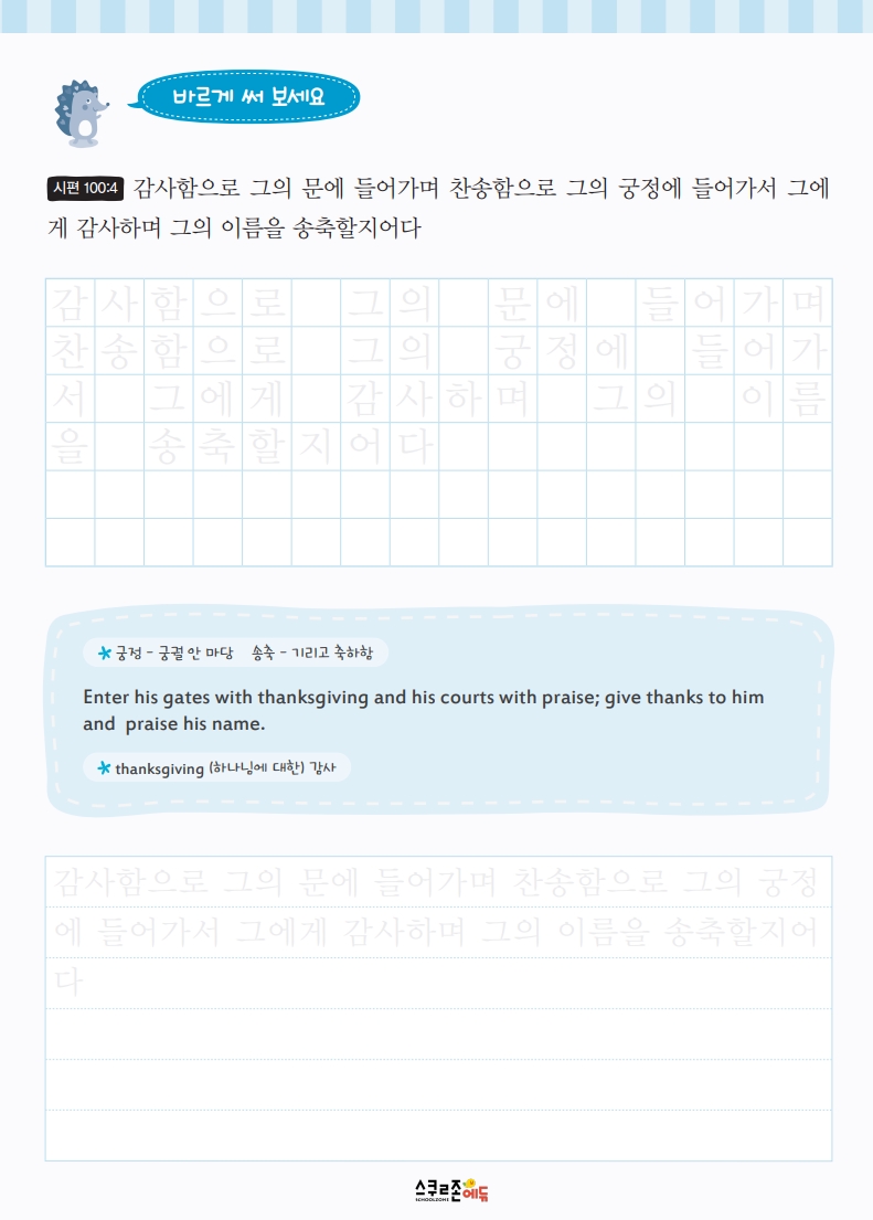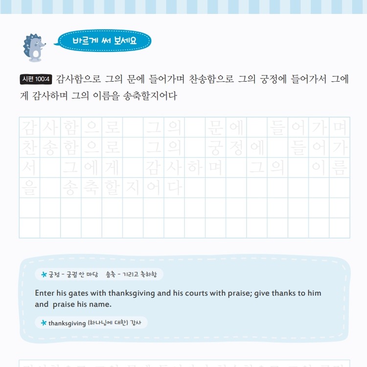 <시편>의 말씀을 따라 쓰며 바른 글씨체와 문학적 표현력을 함께 키웁니다.